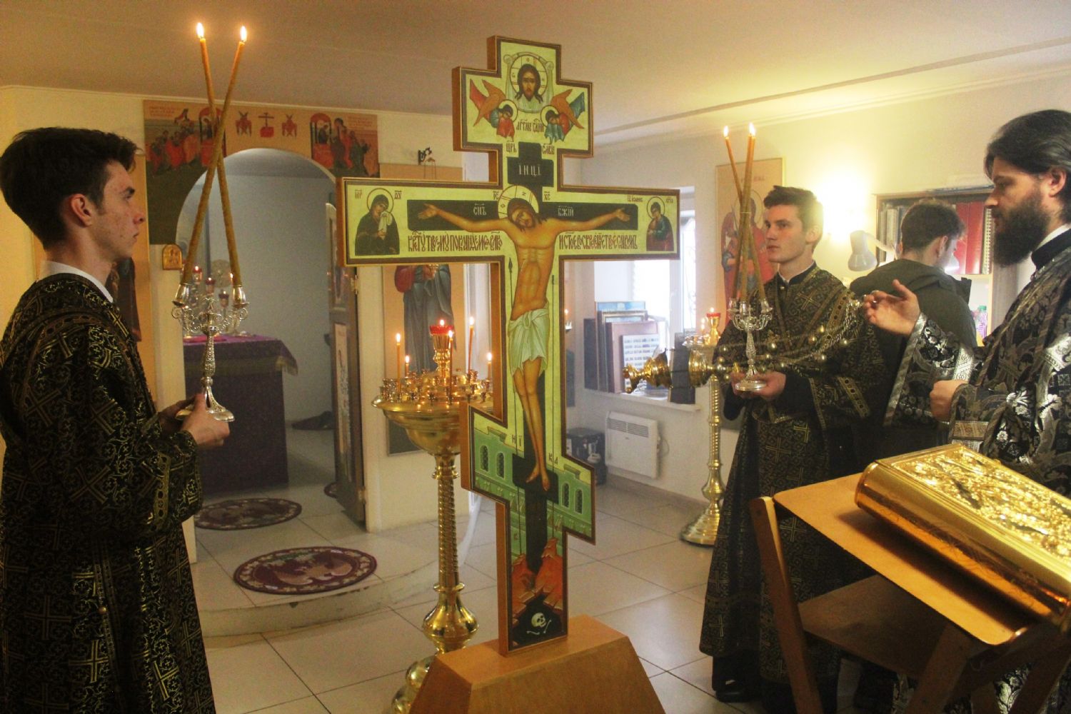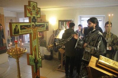 После пения XV Антифона Великого Пятка «Днесь висит на Древе» митрополит Владимир обратился к верующим с архипастырским словом, посвященным евангельскому чтению: «Такие бывают, братья и сестры, в нашей жизни безмятежные периоды, когда мы радуемся общению с Господом, чувствуем, что Он рядом с нами, радуемся тому, что Он прикасается к нашим сердцам Своей благодатью, в особенности когда мы причащаемся Святых Христовых Таин и через это вступаем в теснейшее соединение с Господом. И мы слышали сегодня Слова Христа Спасителя, связанные с установлением этого Таинства. Но порой этот светлый период проходит, нас настигают немощи, болезни, появляются жизненные трудности, и мы в них погружаемся. Заходим в какие-то тупики, порой переживаем некое чувство богооставленности — будто Господь про нас забыл, Он нас оставил, — на сердце нашем становится мрачно и тяжело, и мы думаем, что Господь от нас отвернулся и находится вдали от нас. По сути мы переживаем ту палитру чувств, которые пережили апостолы, когда их Божественный Учитель, Царство Которого они ожидали здесь, на земле, подвергся небывалым унижениям, оскорблениям, был пригвожден ко Кресту и умер за грехи рода человеческого. Мы, дорогие братья и сестры, всегда должны помнить, что Господь никогда от нас не уклоняется. Не отворачивает от нас Своего Божественного лика, не оставляет нас. Иногда Он испытывает нас, хочет проверить нашу любовь так, как Он вопрошал впоследствии к апостолу Петру, который три раза отрекся от Него страха ради иудейска. Господь три раза Петра спрашивает, и мы в день субботний слышим в Евангелии, как Он обращается к Петру: «Любишь ли Меня, Петр?» И тот говорит: «Да, Господи, люблю Тебя, Ты все знаешь, и знаешь, что я люблю Тебя» Тогда Господь поручает ему пасти агнцев — овец своих, и тем самым восстанавливает его в апостольском достоинстве. Так же и нас, дорогие братья и сестры, Господь как бы вопрошает, когда мы переживаем некий период оставлености Богом. Он ждет, чтобы мы укрепились в добродетели молитвы, ждет, чтобы мы научились терпению, чтобы мы научились смиренно, без ропота и истерик переживать все то трудное и сложное, что нас посещает в этой земной жизни. Поэтому нам необходимо осознавать, что Господь всегда пребывает с нами, всегда готов протянуть нам Спасающую Свою руку, вытянуть нас из бездны греха, которая порой нас настигает. Помочь нашему исправлению, укрепить наши духовные и телесные силы, лишь бы были верны Ему, не роптали, не отворачивались от Него, а наоборот призывали бы Его в помощь. Будем же просить Его об укреплении нашей веры, укреплении наших душевных сил, чтобы Господь помогал нам извлекать правильные уроки из того, что происходит с нами в этой жизни. Будем благодарить Его за неизреченную любовь и милосердие, которое выразилось в том, что Сам Бог снизошел на землю, стал человеком, во всем подобным нам, кроме греха, взошел на Крест, пролил Свою кровь за нас, умер за нас для того, чтобы каждый из нас имел возможность, прожив на земле достаточно короткий отрезок жизни — по сравнению с вечностью — войти после этого в Небесную радость Господа Своего и пребывать с Ним в блаженстве Его Невечернего Царствия».