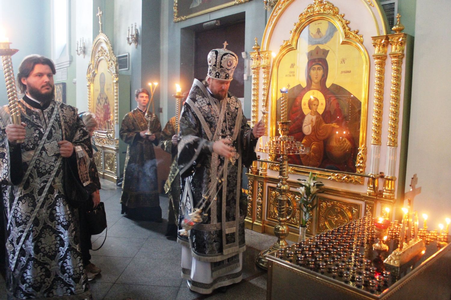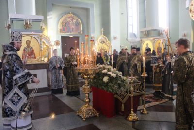 Его Высокопреосвященству сослужили: исполняющий обязанности ключаря Покровского собора иерей Владимир Плотников, игумен Антоний (Каменчук), протоиерей Игорь Шевчук, иерей Максим Точуков, иерей Дионисий Ищенко.