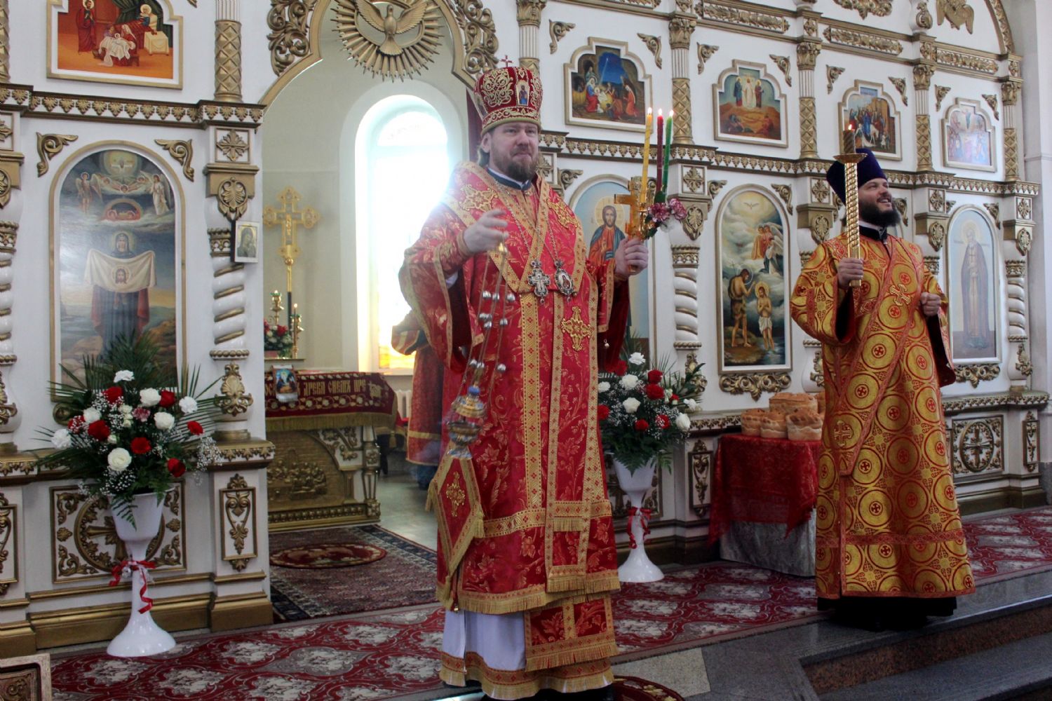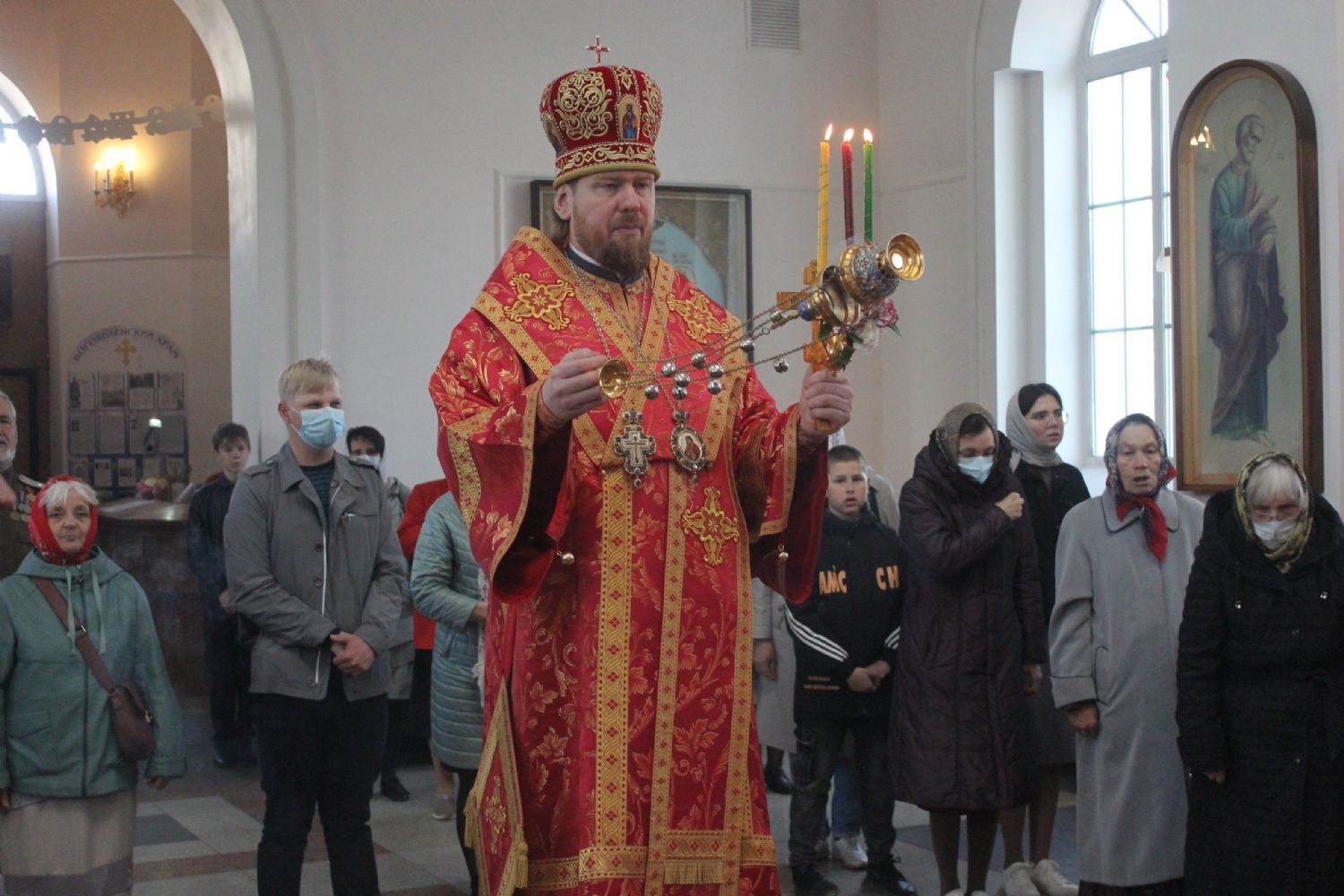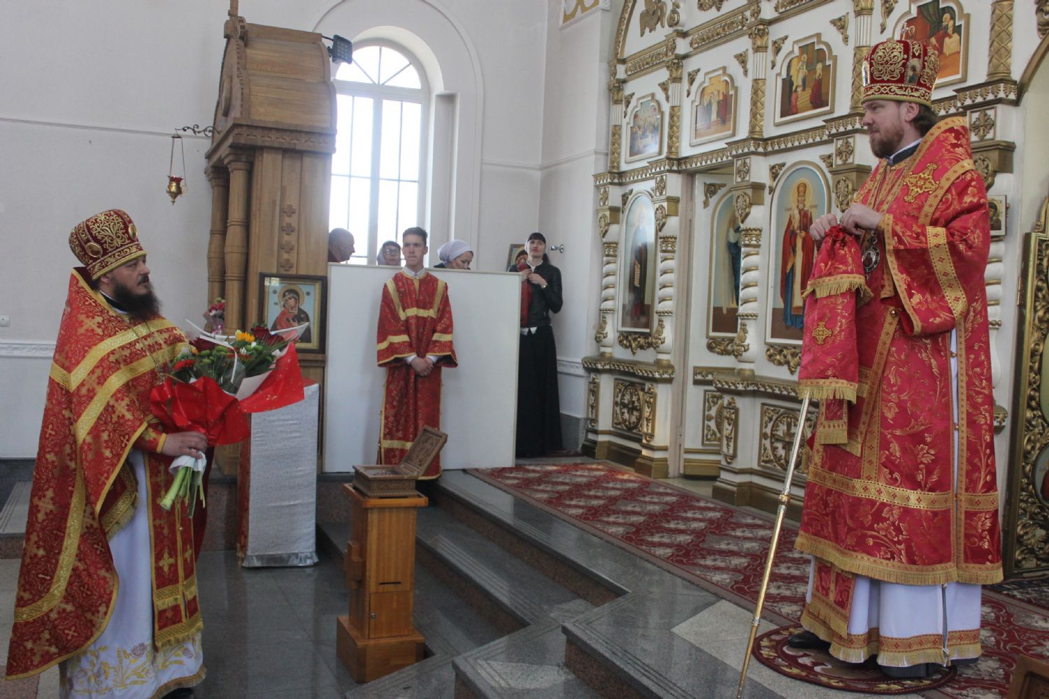 В завершение богослужения настоятель храма протоиерей Константин Чунчук от имени клира и прихожан поблагодарил владыку за совместную молитву, поздравил с праздником Светлого Христова Воскресения и преподнес букет цветов.