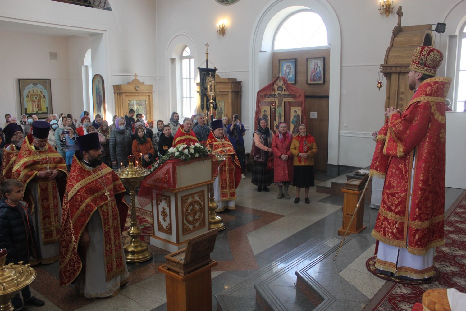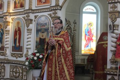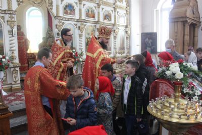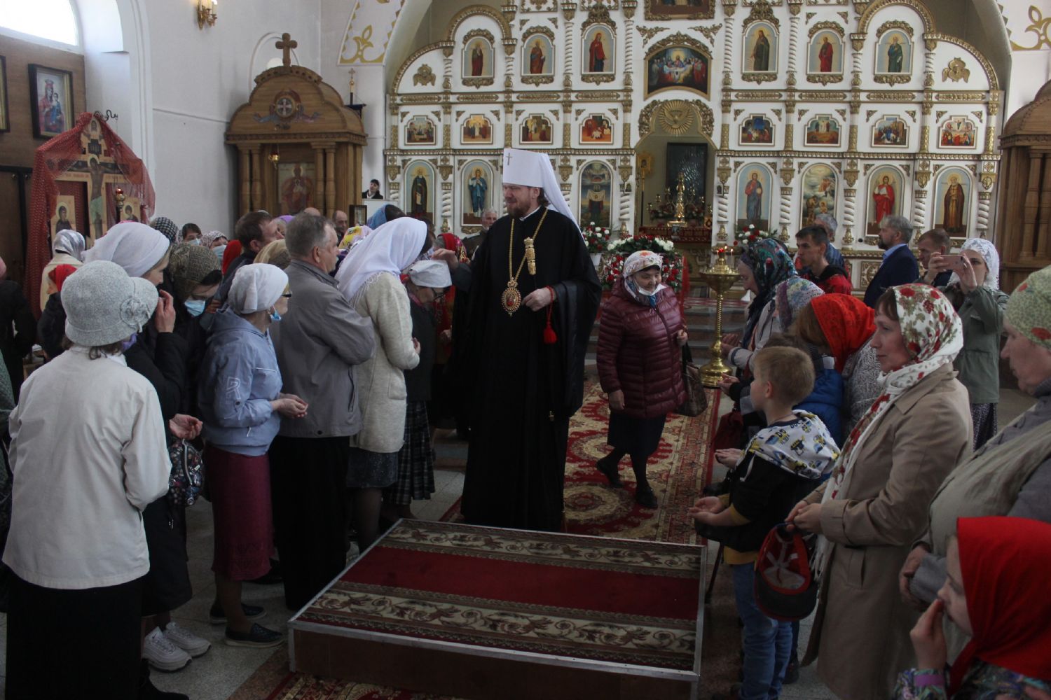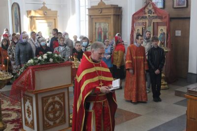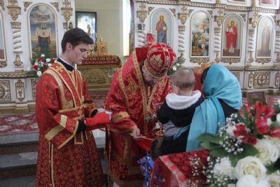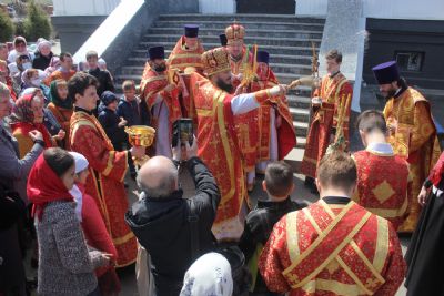 В завершение богослужения настоятель храма протоиерей Константин Чунчук от имени клира и прихожан поблагодарил владыку за совместную молитву, поздравил с праздником Светлого Христова Воскресения и преподнес букет цветов.