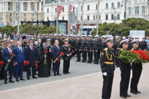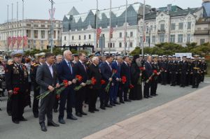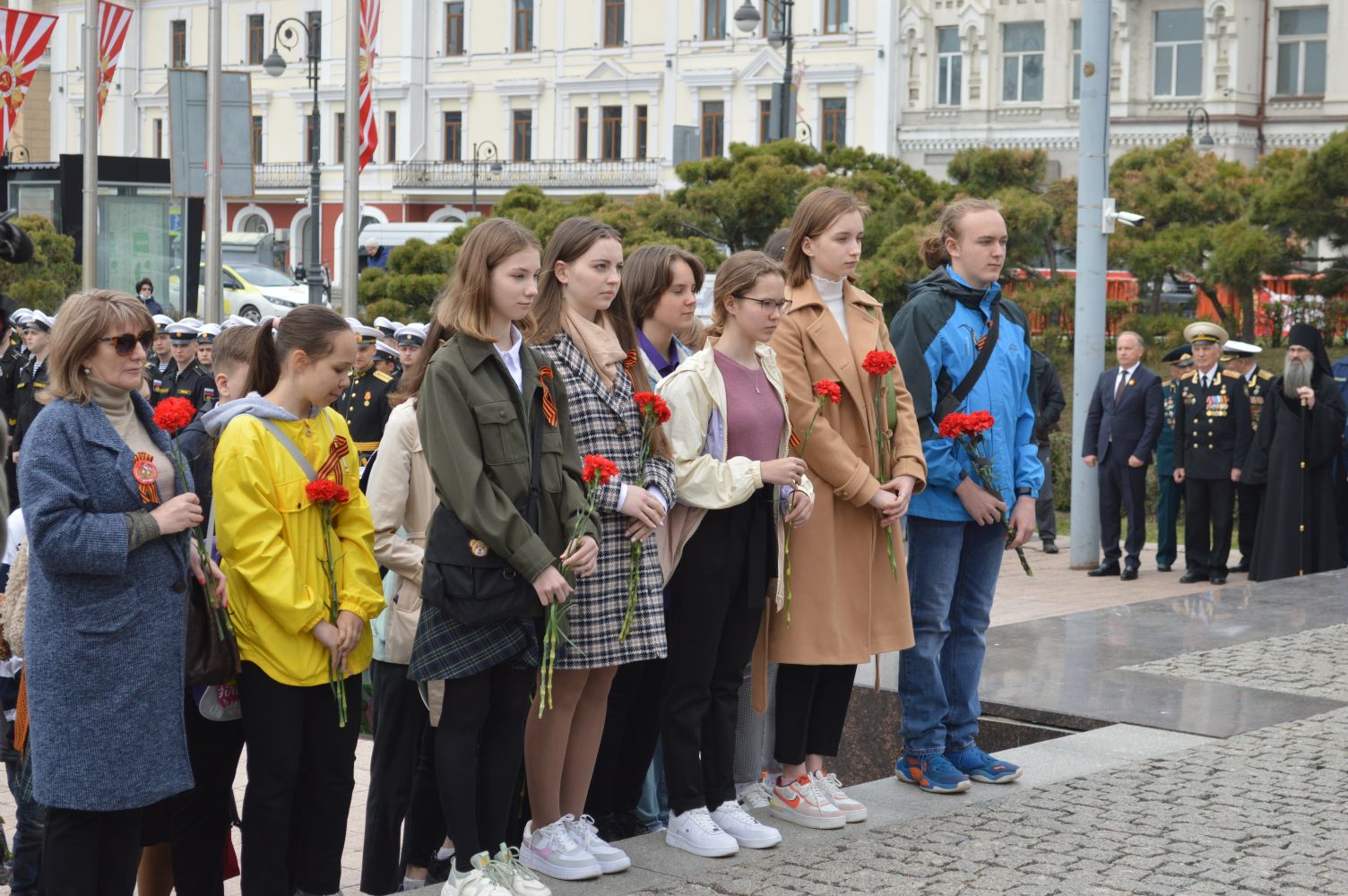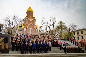 Владивосток. 7 мая в различных памятных местах города состоялись торжественные церемонии, посвященные 76-й годовщине Победы. На центральной площади Владивостока у стеллы "Владивосток - город воинской славы" и на Корабельной набережной у мемориала "Боевая слава ТОФ" прошли акции по возложению цветов в память защитников Отечества. По благословению митрополита Владивостокского и Приморского Владимира в них принял участие викарий Владивостокской епархии епископ Уссурийский Иннокентий и руководитель епархиального отдела по взаимодействию с вооруженными силами РФ иерей Даниил Есаков. Среди участников мероприятий находились также председатель краевого законодательного собрания Александр Ролик, глава города Владивостока Олег Гуменюк, председатель думы Владивостока Андрей Брик, председатель городского Совета ветеранов Сергей Кондратенко, военнослужащие, курсанты, воспитанники военно-патриотических клубов, школьники и другие гости.