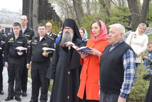 По окончании молебна иерей Даниил Есаков поздравил всех с праздником Пасхи Христовой и днем Победы, обратившись со словами приветствия к военным морякам.