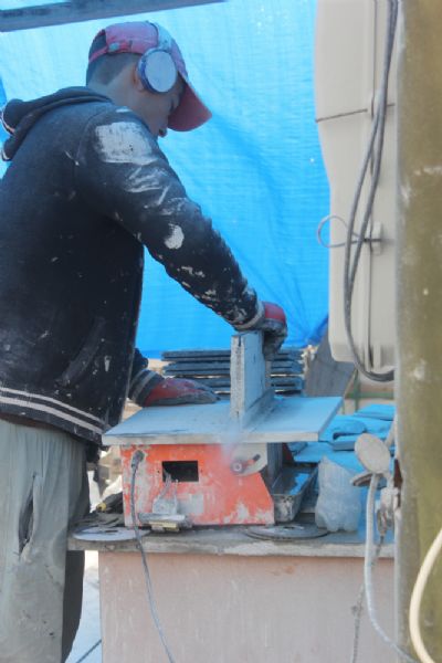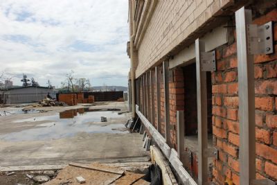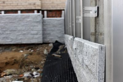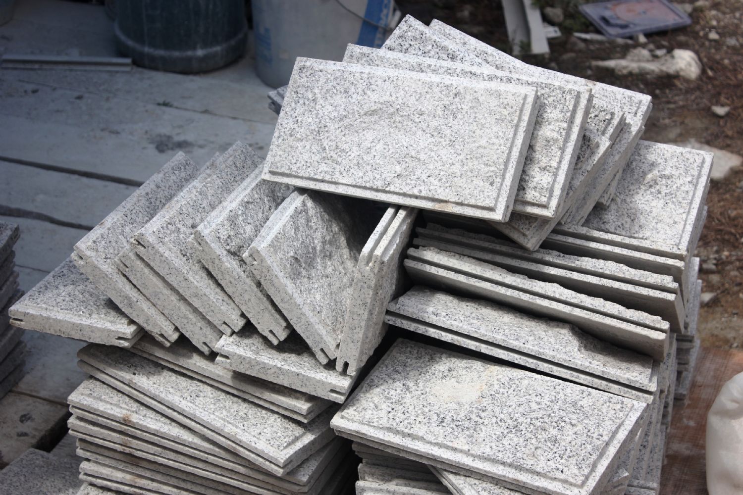 Осуществляется облицовка фасада здания собора натуральным камнем на ранее установленные подсистемы.
