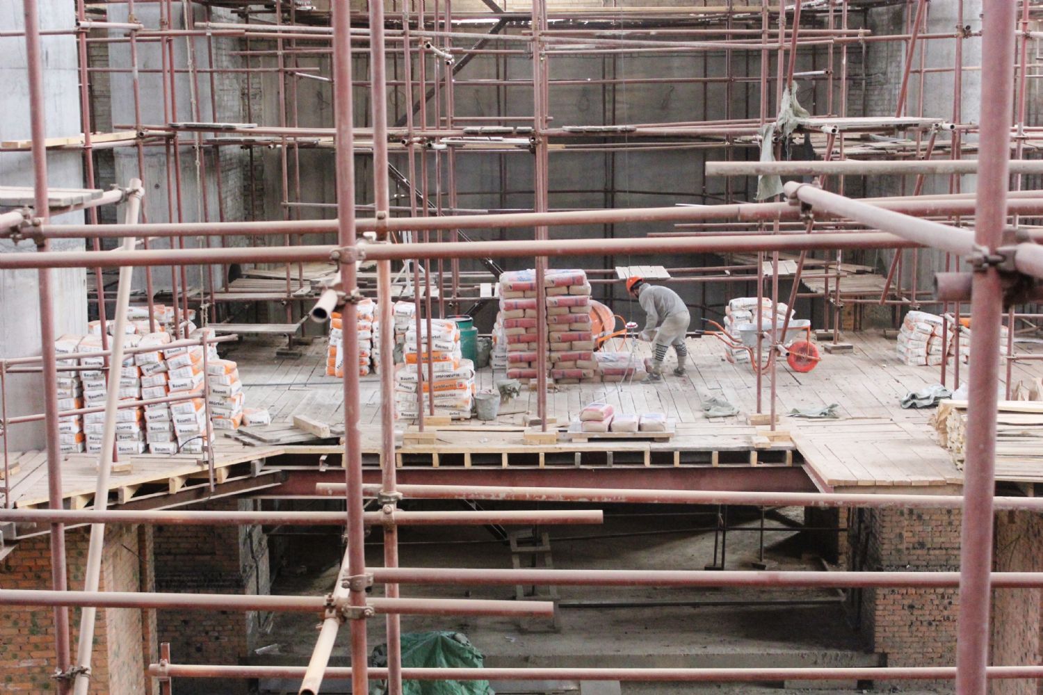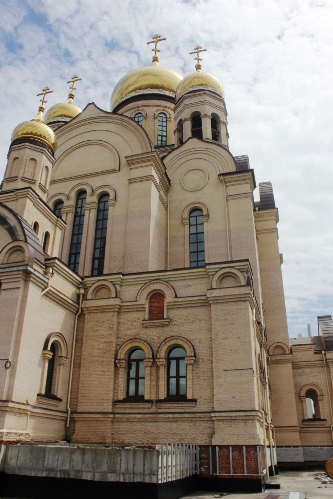 В настоящее время продолжаются работы по обустройству эксплуатируемой кровли стилобатной части собора, обустройству инженерных сетей, в цокольном этаже ведется обустройство перегородок согласно новой планировке. Начаты подготовительные работы к оштукатуриванию стен храма. Ведется установка армирующих сеток, грунтование поверхностей. В ближайшее время ожидается поставка полного объема всех необходимых материалов.