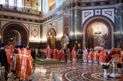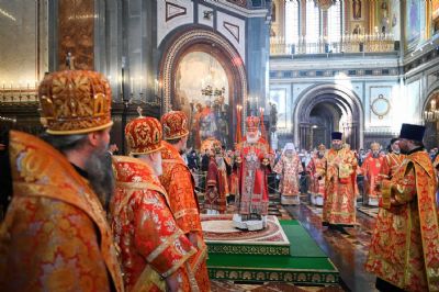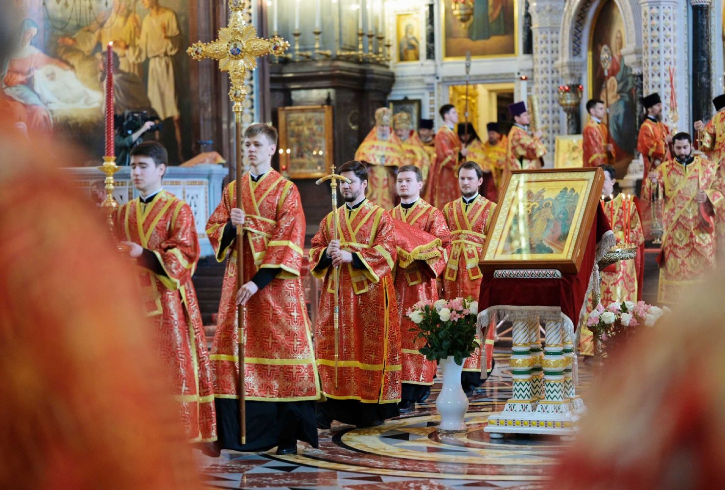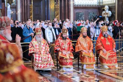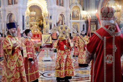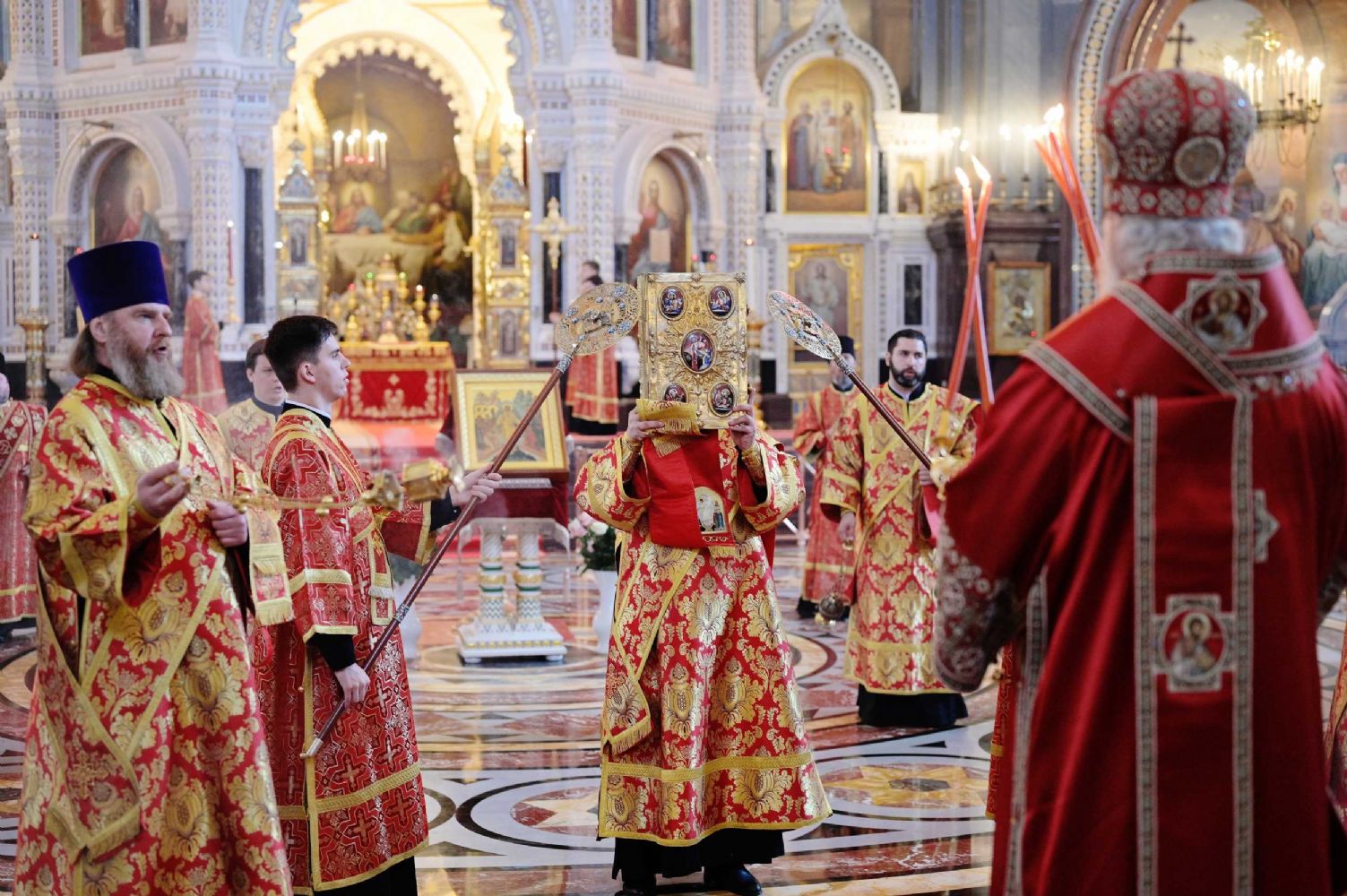 В Неделю святых жен-мироносиц митрополит Владимир молился за Патриаршим богослужением в Храме Христа Спасителя