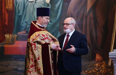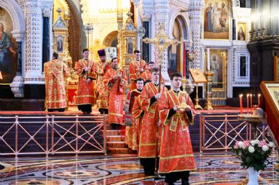Богослужебные песнопения исполнил Патриарший хор Храма Христа Спасителя (регент И.Б. Толкачев).