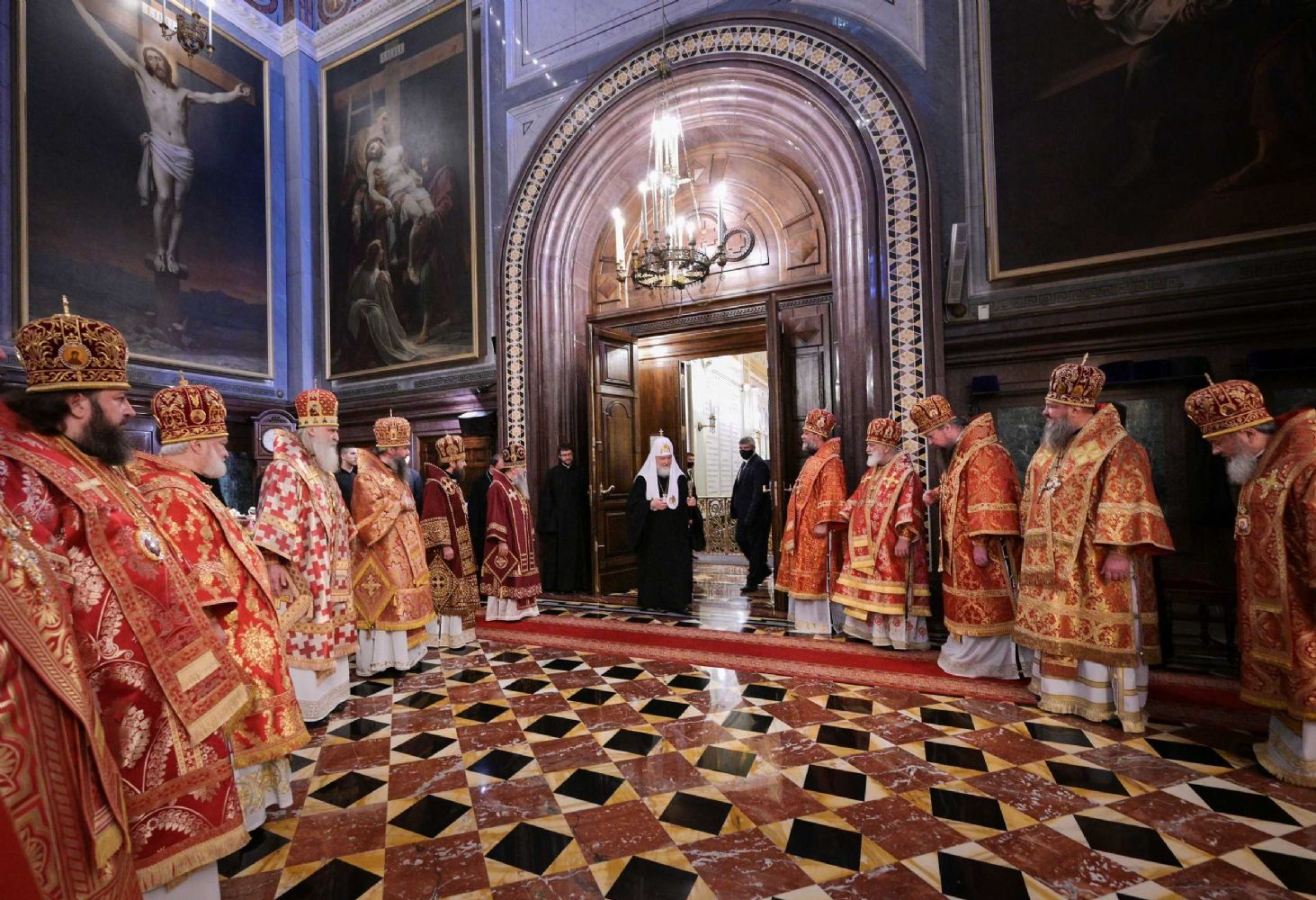 За Божественной литургией Его Святейшеству сослужили: митрополит Кишиневский и всея Молдовы Владимир; митрополит Санкт-Петербургский и Ладожский Варсонофий; митрополит Крутицкий и Коломенский Павел, Патриарший наместник Московской митрополии; митрополит Волоколамский Иларион, председатель Отдела внешних церковных связей Московского Патриархата; митрополит Воскресенский Дионисий, управляющий делами Московской Патриархии, первый викарий Патриарха Московского и всея Руси по г. Москве; митрополит Екатеринбургский и Верхотурский Евгений, председатель Синодального отдела религиозного образования и катехизации, председатель Организационного комитета Международных образовательных чтений; архиепископ Тираспольский и Дубоссарский Савва; архиепископ Каширский Феогност, председатель Синодального отдела по монастырям и монашеству; епископ Кагульский и Комратский Анатолий; епископ Унгенский и Ниспоренский Петр; епископ Бельцкий и Фэлештский Маркелл; епископ Единецкий и Бричанский Никодим; епископ Сорокский Иоанн; епископ Орхейский Силуан; протопресвитер Владимир Диваков, секретарь Патриарха Московского и всея Руси по г. Москве; протоиерей Михаил Рязанцев, ключарь Храма Христа Спасителя; протоиерей Николай Балашов, заместитель председателя Отдела внешних церковных связей; архимандрит Алексий (Туриков), личный секретарь Святейшего Патриарха Кирилла; духовенство Московского Патриархата.