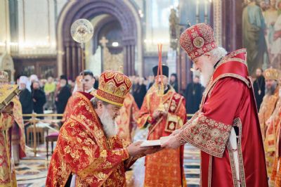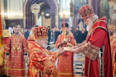 На малом входе во внимание к усердным архипастырским трудам на благо Русской Православной Церкви Святейший Патриарх Кирилл возвел в сан митрополита архиепископа Каширского Феогноста, в сан архиепископа — епископа Кагульского и Комратского Анатолия, епископа Унгенского и Ниспоренского Петра, епископа Бельцкого и Фэлештского Маркелла, епископа Единецкого и Бричанского Никодима.