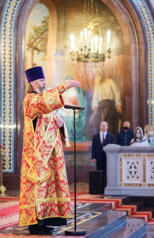 Проповедь перед причастием произнес иеромонах Онисим (Бамблевский), председатель Отдела религиозного образования Московской городской епархии.
