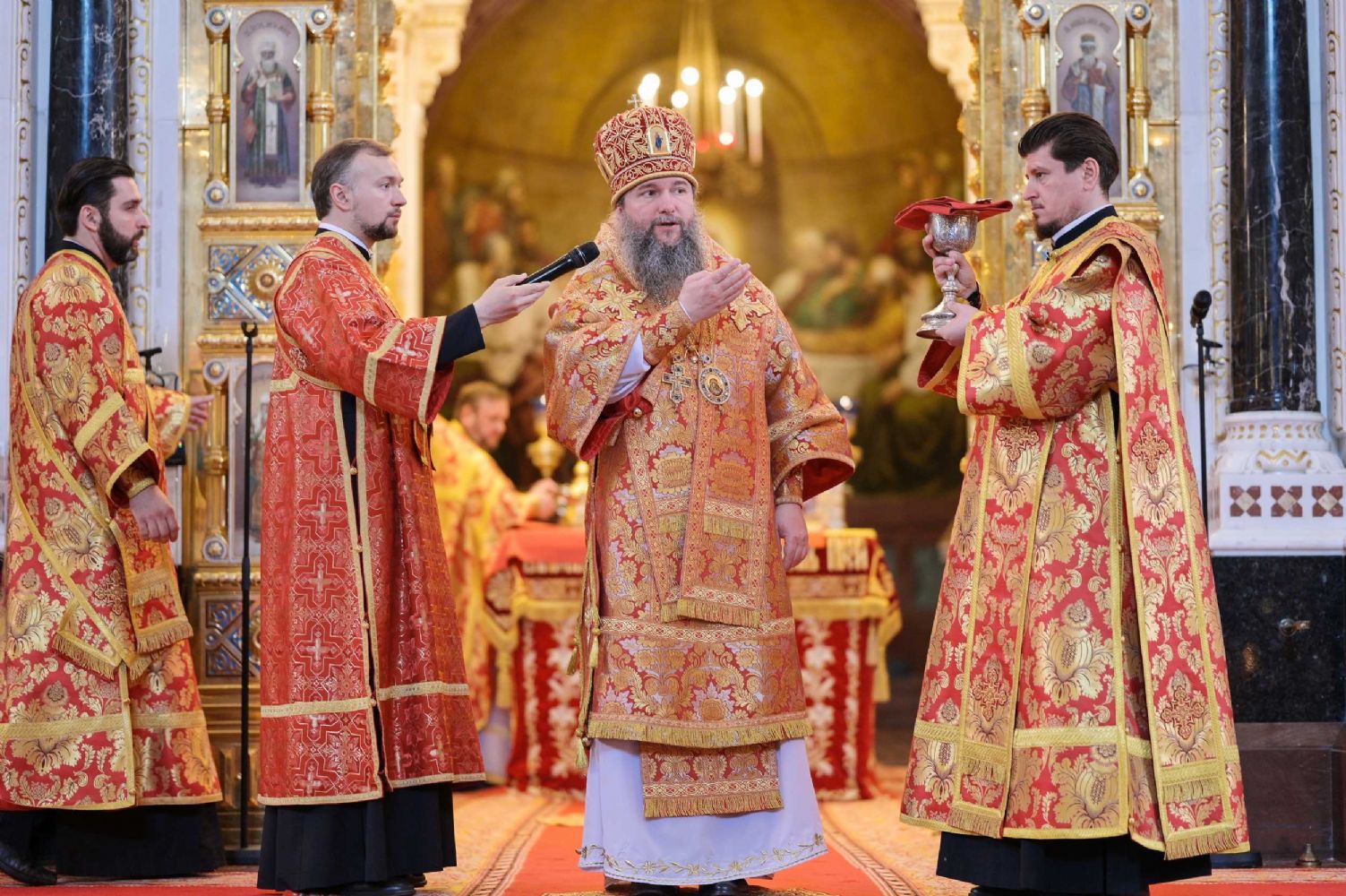 В Храме Христа Спасителя молились архиереи Русской Православной Церкви, прибывшие в Москву для участия в XXIX Международных образовательных чтениях, среди которых — митрополит Владивостокский и Приморский Владимир.