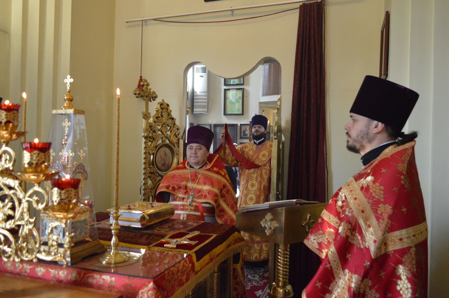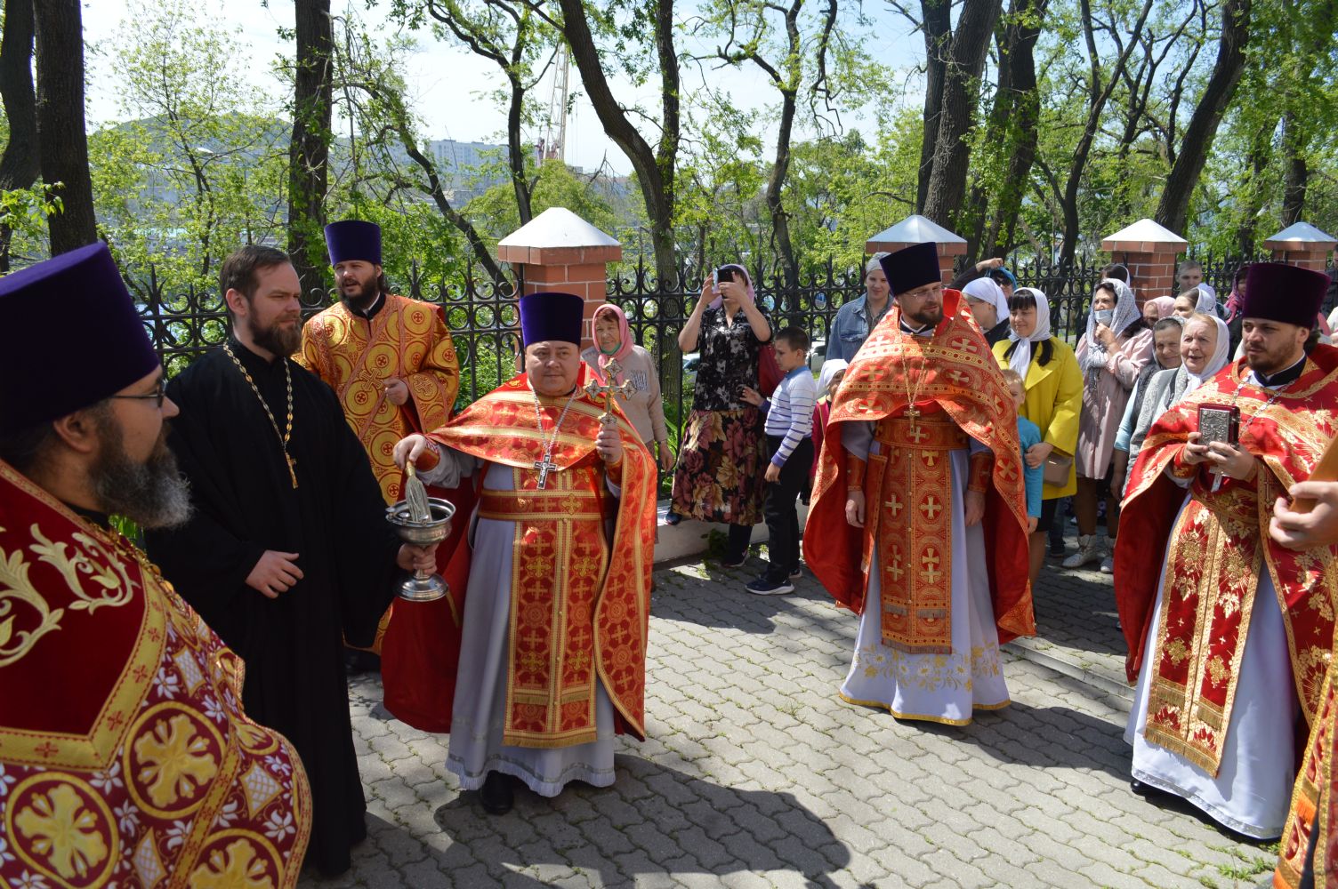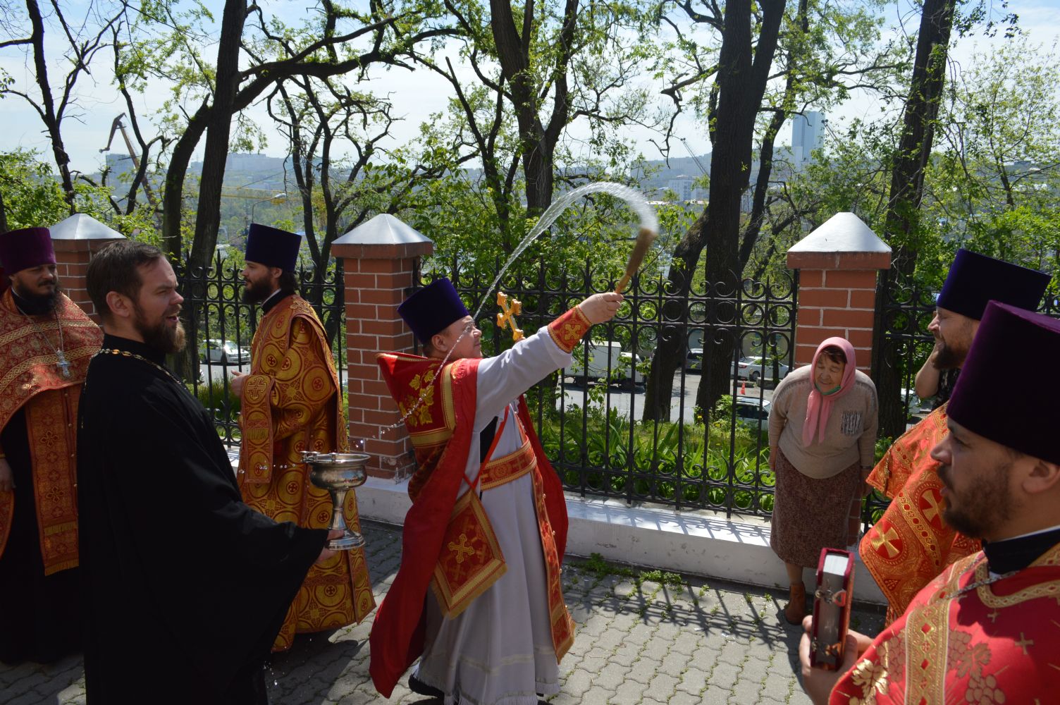 Богослужение возглавил настоятель Никольского храма, благочинный I Владивостокского благочиния Владивостокской епархии, исполняющий обязанности благочинного II Владивостокского благочиния протоиерей Сергий Шуталев в сослужении клирика храма Успения Пресвятой Богородицы протоиерея Димитрия Федорина, ключаря собора Покрова Пресвятой Богородицы иерея Владимира Плотникова, настоятеля храма Порт-Артурской иконы Божией Матери иерея Илии Точукова.