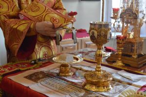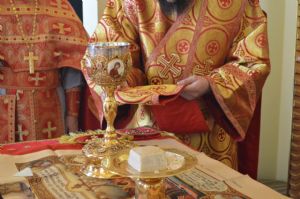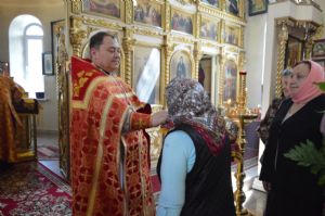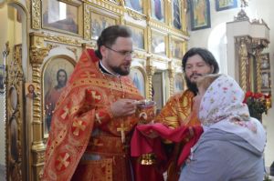 В завершение богослужения протоиерей Сергий Шуталев поздравил причастников с принятием Святых Христовых Таин и обратился к молящимся с проповедью.