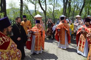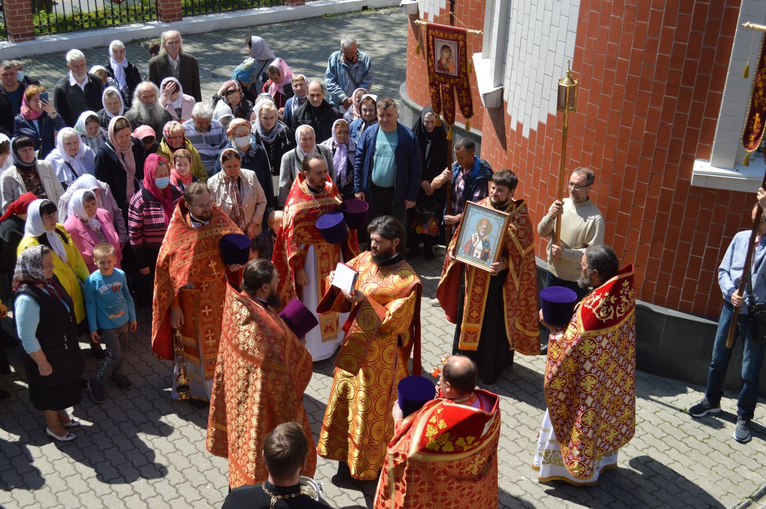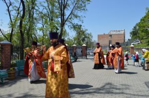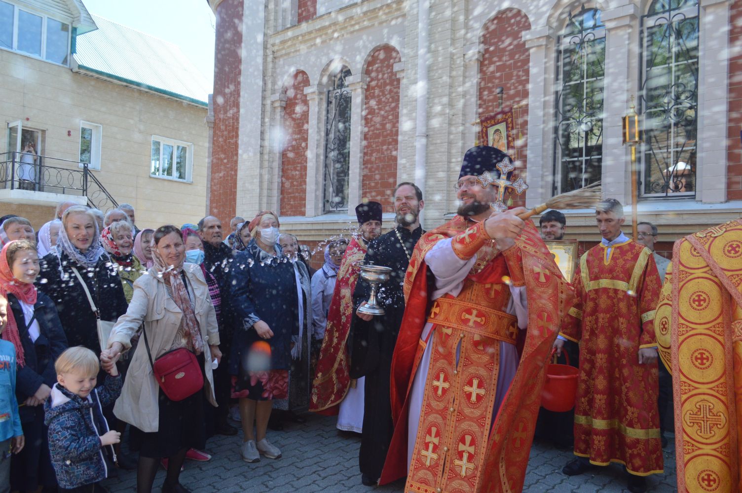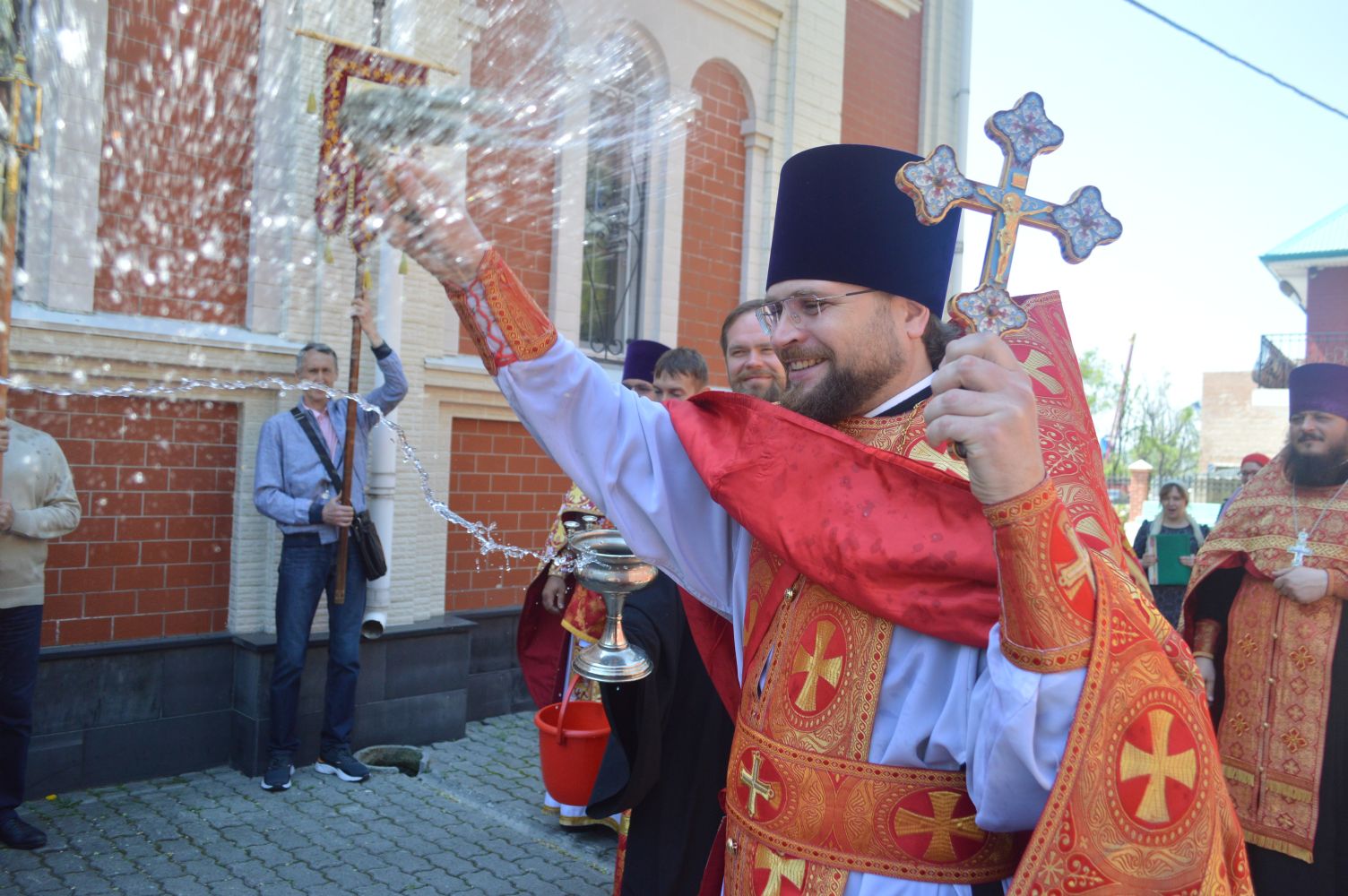 По заамвонной молитве духовенство и прихожане прошли крестным ходом вокруг храма.
