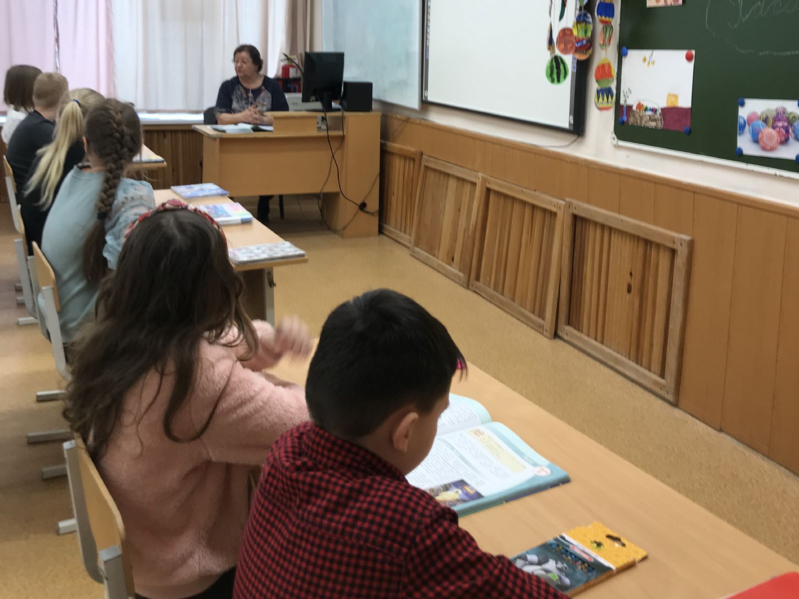 Учитель Надежда Михайловна Бабейчук, также использовала технические средства, в частности, интерактивную доску, ребята смогли увидеть убранство православного храма в Пасхальный праздник, послушать праздничные пасхальные песнопения, колокольный праздничный звон и многое другое.