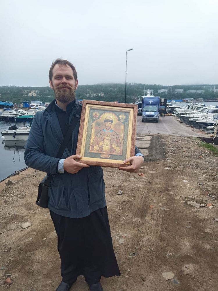 Владивосток. Продолжается пребывание Крестного хода «Святая Русь» на Дальнем Востоке, посвященному 130-летию путешествия по России Цесаревича Николая Александровича Романова, будущего и Государя императора России. 1 июня 2021 года вдоль побережья г. Владивостока совершен молитвенный морской Крестный ход со святынями: точной копией Годеновского креста, иконами Государя Императора Николая II, Порт-Артурской Божией Матери, Магаданской Божией Матери.