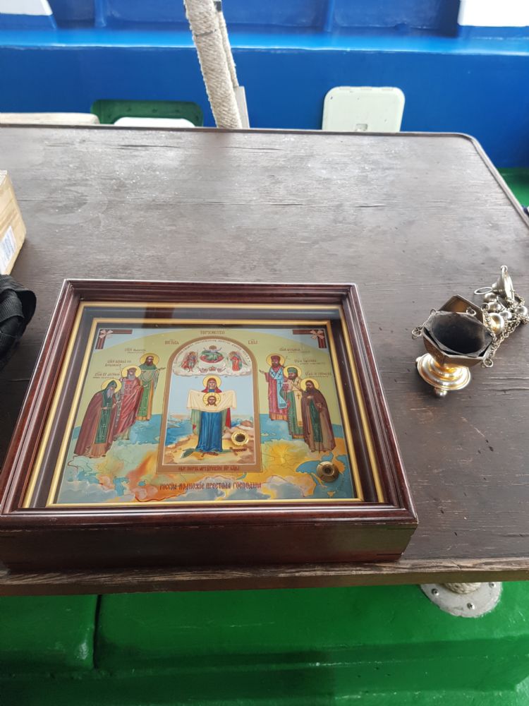 Магаданская икона Божией Матери - икона изображает Богородицу, восседающей на престоле с венцом на главе в окружении архангелов Михаила и Гавриила. В руках Царицы Небесной свиток со словами "Спасение за прощением, прощение за покаянием."
