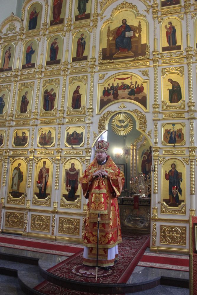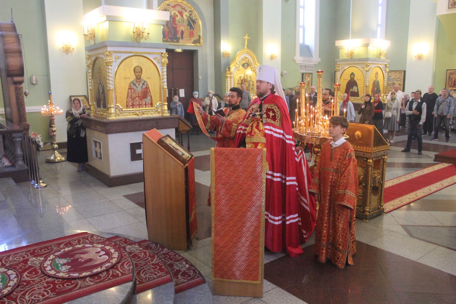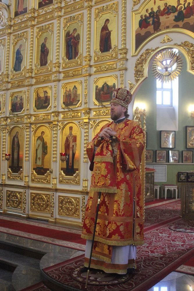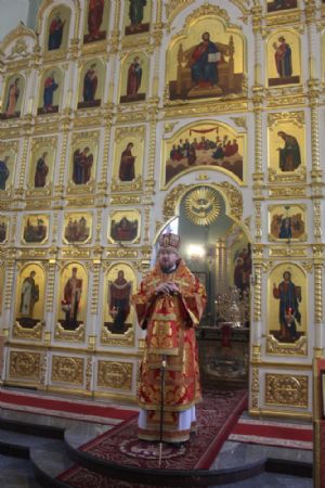 Его Высокопреосвященству сослужили: ключарь Покровского собора иерей Владимир Плотников, иерей Максим Точуков, иерей Дионисий Ищенко.
