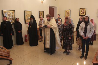 Владивосток . Вечером 31 декабря викарий Владивостокской епархии епископ Уссурийский Иннокентий совершил в храме Успения Божией Матери молебен на начало нового гражданского 2022 года. Ему сослужили прот. Димитрий Федорин, диакон Анатолий Кулик,