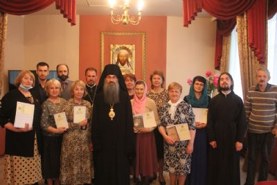 Мероприятие началось с благодарственного молебна в Сергиевском храме епархиального управления. Затем учащиеся собрались в актовом зале. Здесь епископ Уссурийский Иннокентий обратился с приветствием к собравшимся, а руководитель курсов Латышева И. С. подвела итоги их деятельности за 2020-2021 учебный год. По результатам обучения завершили программу курсов и получили свидетельства 9 человек.