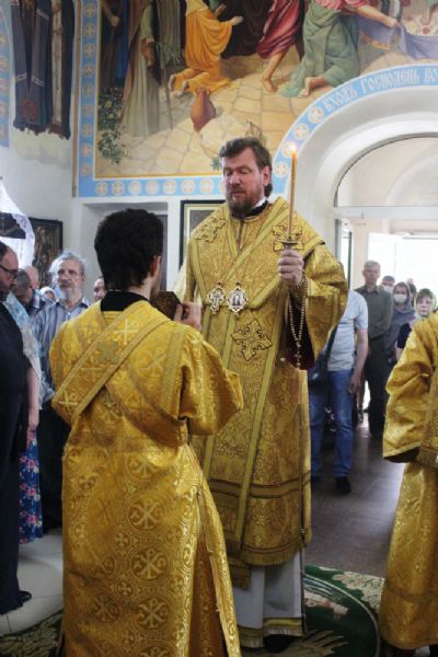 Поблагодарив за поздравления, митрополит Владимир обратился к верующим с архипастырским словом, поздравил молящихся с днем памяти святых первоверховных апостолов Петра и Павла — престольным праздником придела храма, и преподал благословление.