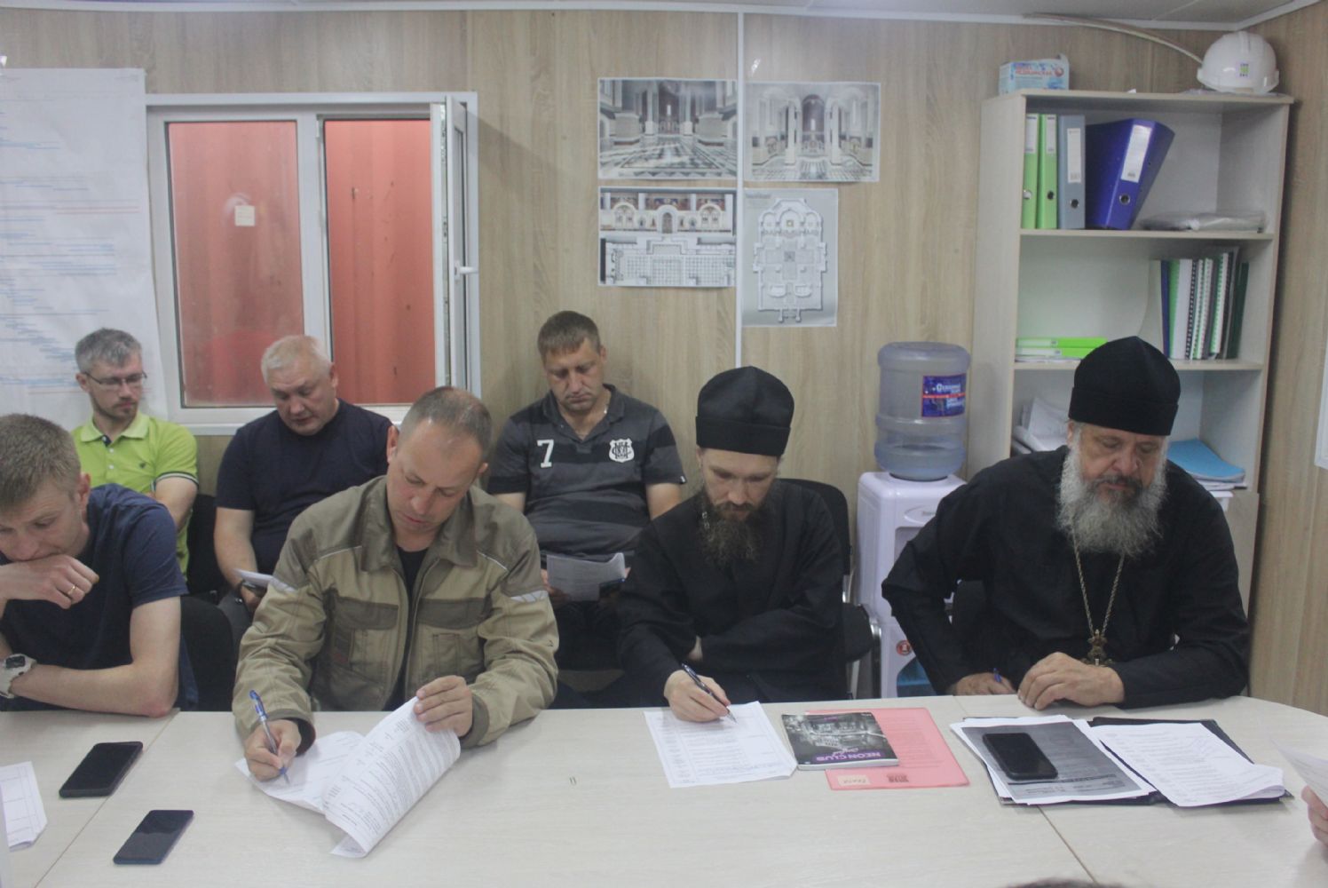Владивосток. 15 июля 2021 года митрополит Владивостокский и Приморский Владимир провел очередное рабочее совещание на строительной площадке Спасо-Преображенского кафедрального собора.