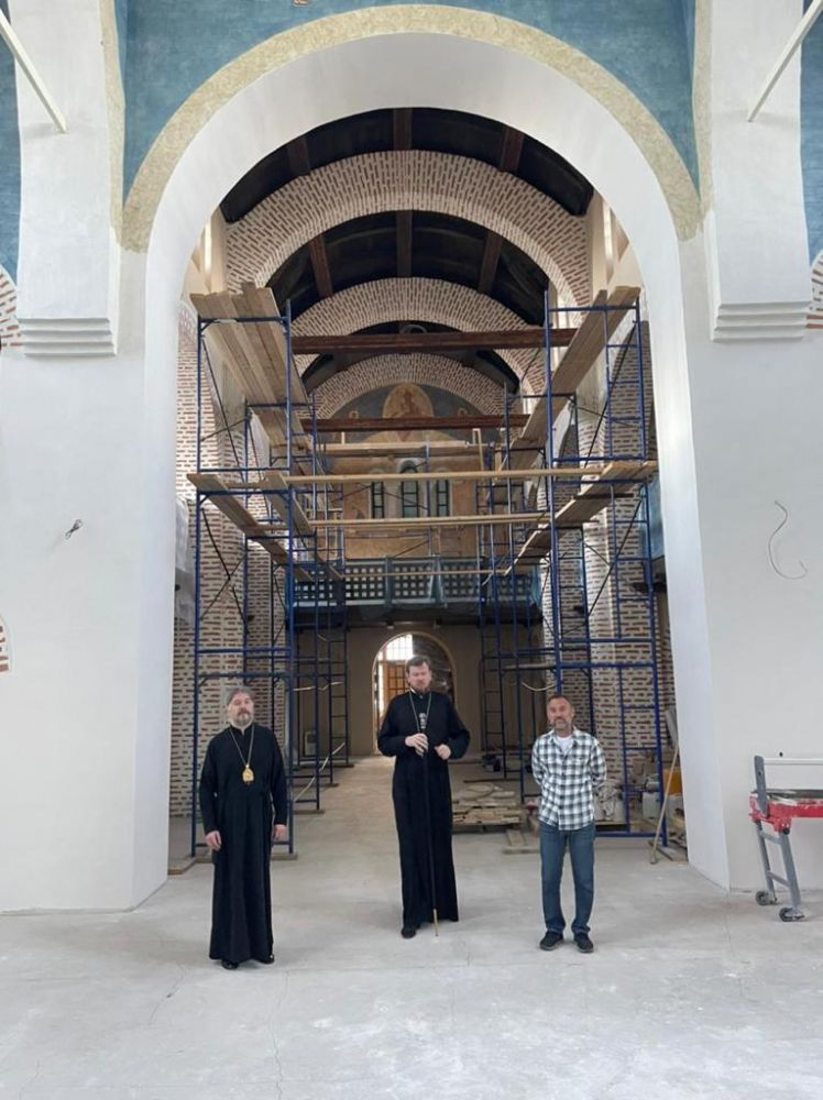 В сопровождении благотворителя Находкинской епархии Андрея Куликова архипастыри осмотрели строящийся храмовый комплекс и ознакомились с ходом отделочных работ.