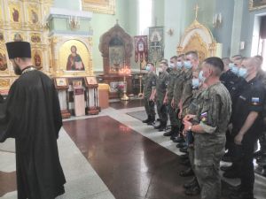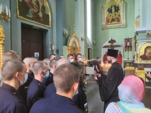 Военнослужащие также молились вог время молебна с акафистом святому, который совершил клирик Свято-Николтского кафедрального собора иерей Сергий Зверев.
