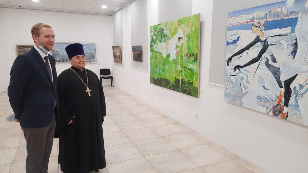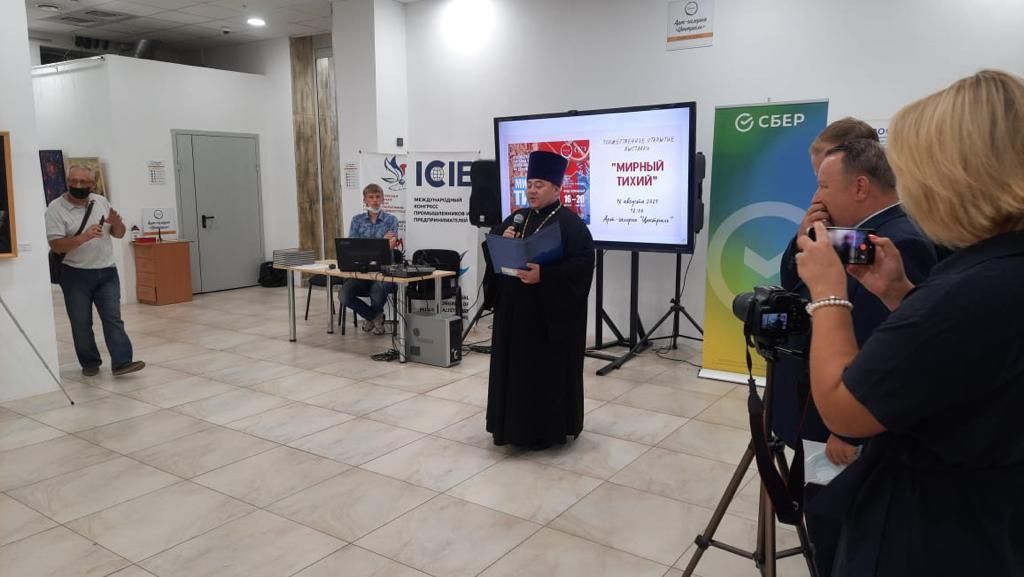 Владивосток. 16 августа 2021 года в арт-галерее «Централь» состоялась торжественная церемония открытия художественной выставки «Мирный Тихий», участие в которой приняли благочинный I Владивостокского благочиния Владивостокской епархии, исполняющий обязанности благочинного II Владивостокского благочиния протоиерей Сергий Шуталев и клирик храма Святителя Николая г. Владивостока священник Павел Иванчин.