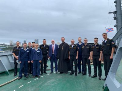 Владивосток. 21 августа 2021 года помощник руководителя Синодального отдела по взаимодействию с вооружёнными силами и правоохранительными органами, викария Патриарха Московского и всея Руси, епископа Бронницкого Савватия, Михаил Хасьминский побеседовал с рядовым составом экипажа корабля измерительного комплекса Маршал Крылов.