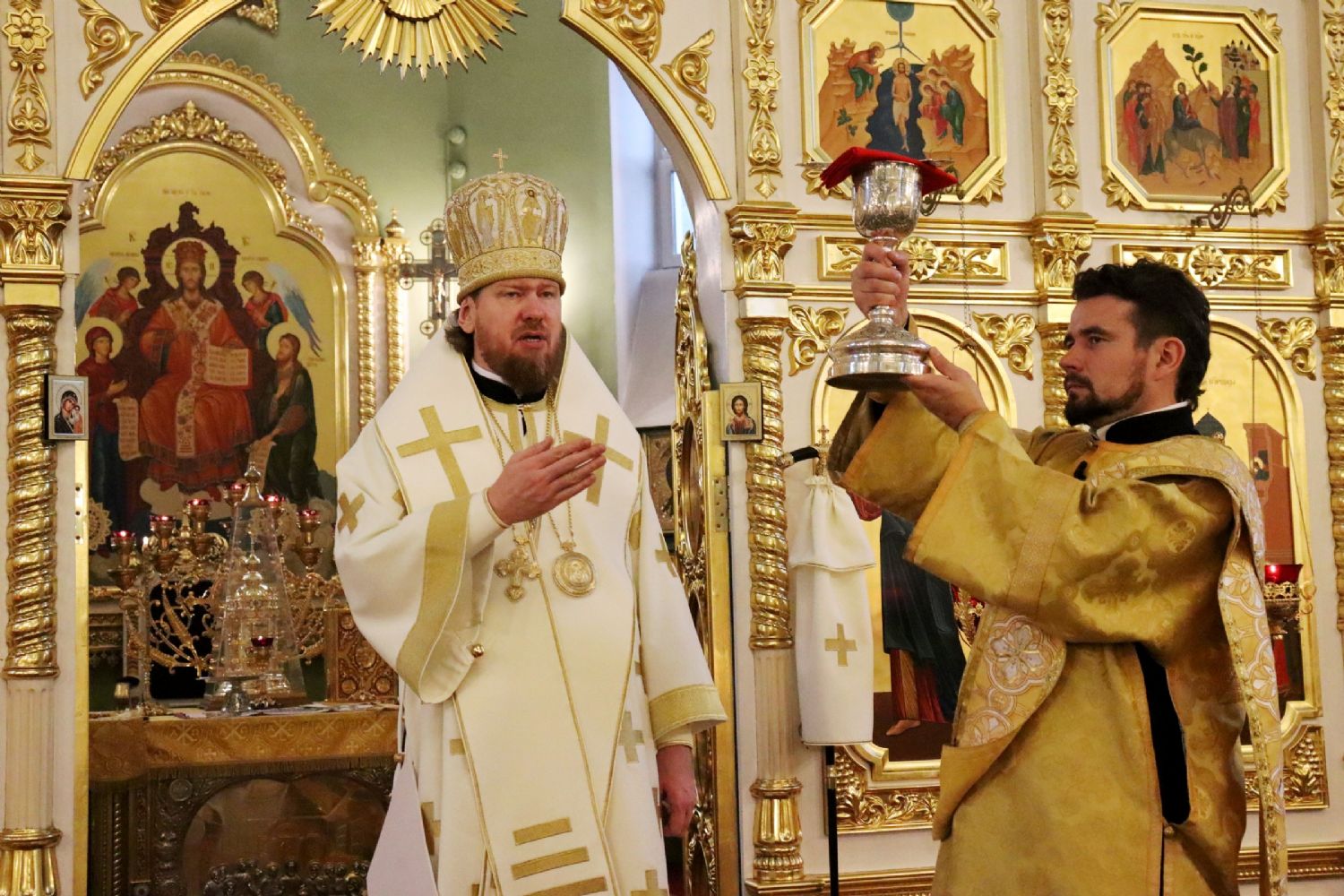 На сугубой ектении глава Приморской митрополии вознес молитву ко Господу о завершении строительства Спасо-Преображенского кафедрального собора г. Владивостока и молитву во время распространения вредоносного поветрия чтомую, также были вознесены молитвенные прошения в связи с угрозой распространения коронавирусной инфекции.