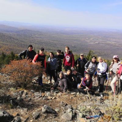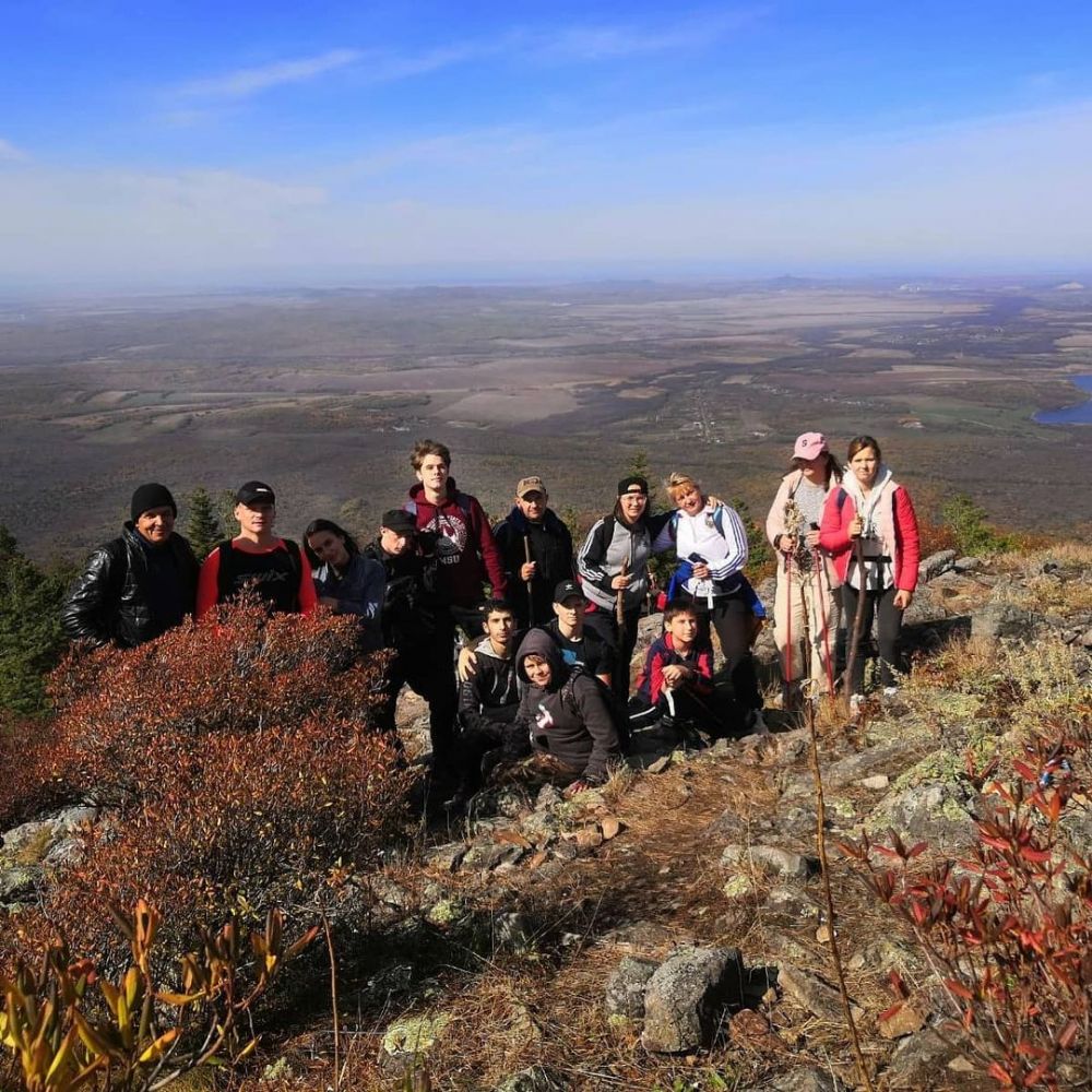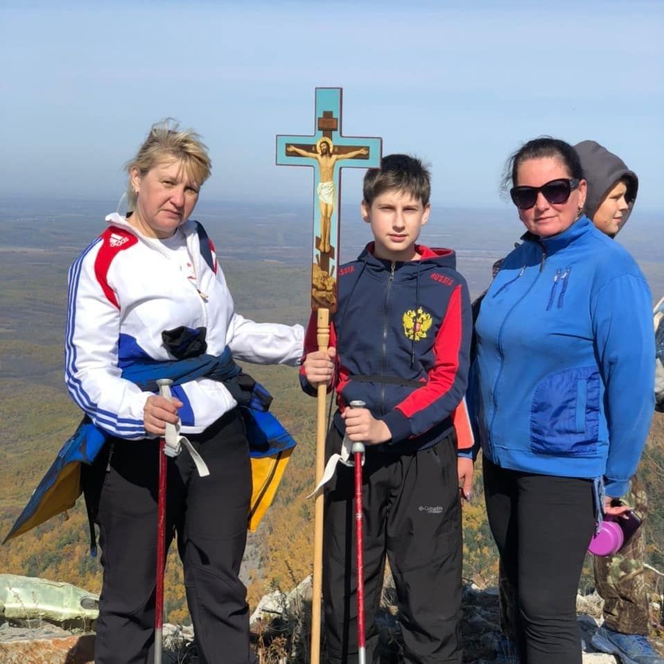Утром совершили краткое моление о путешествующих, батюшка Владимир вручил мужчинам Крест и окропил всех святой водой. Подъем и спуск заняли семь часов. Высота сопки 924м. Всего поднимались 21 человек во главе с бессменным руководителем Ириной Моляренко. Команда состояла из детей и родителей Воскресной школы, прихожан храма, учащихся Муниципальной гимназии, спортсменов.