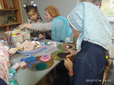 После трапезы гости прихода участвовали в мастер-классах, которые провели дети и преподаватели воскресной школы: