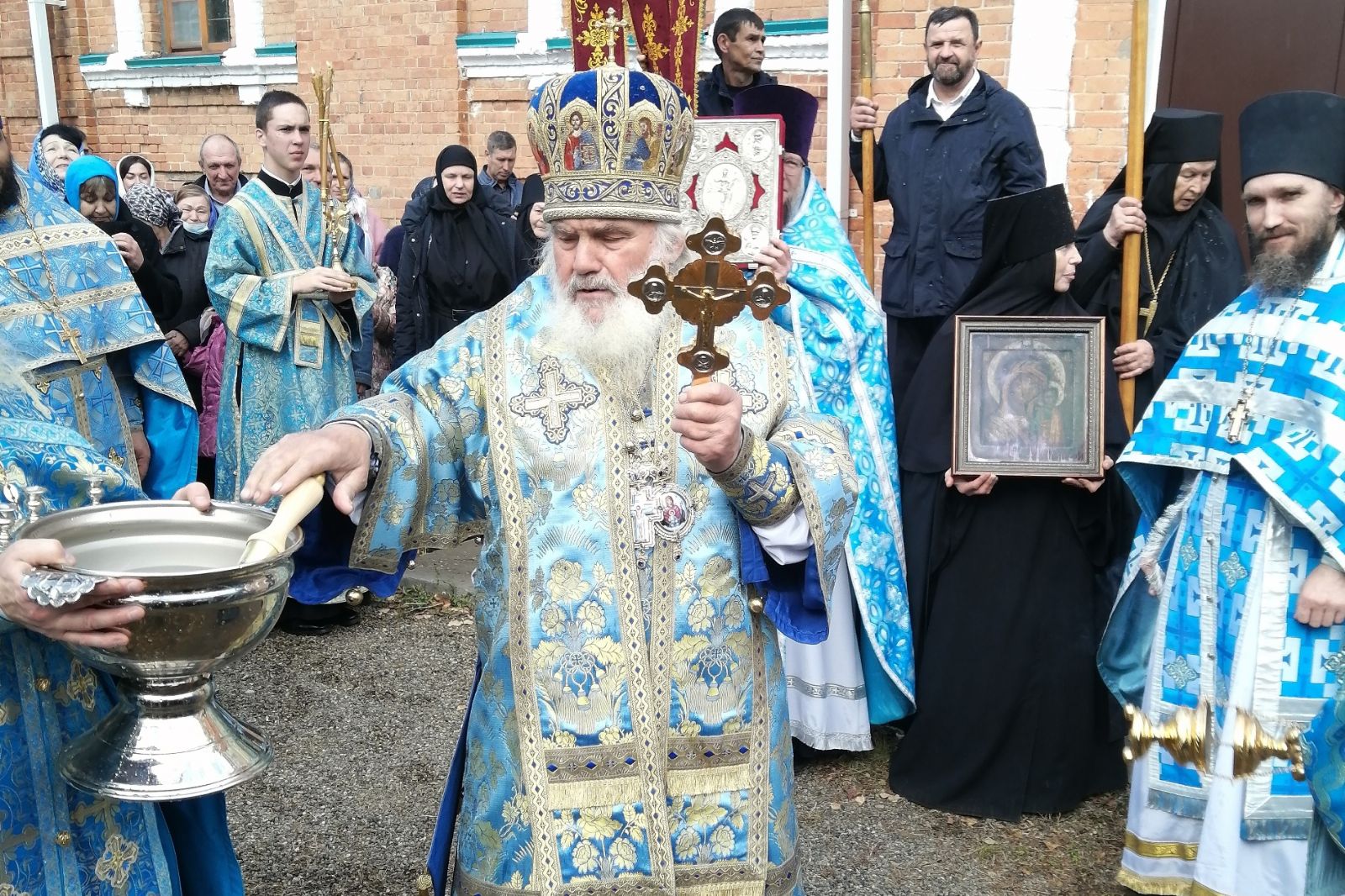 По окончании Божественной литургии состоялся крестный ход вокруг Казанского храма.