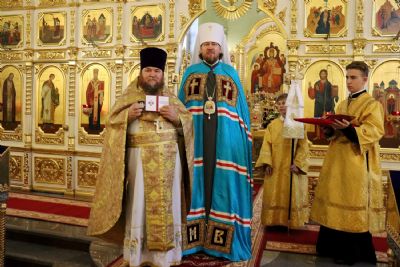Его Высокопреосвященству сослужили: благочинный I Владивостокского благочиния Владивостокской епархии, исполняющий обязанности благочинного II Владивостокского благочиния протоиерей Сергий Шуталев; благочинный II округа Владивостокской епархии протоиерей Андрей Машанов; благочинный III округа протоиерей Евгений Маляр; благочинный IV округа игумен Тихон (Иршенко); ключарь Свято-Никольского собора протоиерей Александр Талько; настоятель Казанского храма г. Владивостока протоиерей Ростислав Мороз; настоятель храма Покрова Божией Матери пос. Угловое протоиерей Сергий Бирюк; настоятель храма в честь святой мученицы Татианы г. Владивостока протоиерей Максим Романенко; настоятель храма в честь апостола Андрея Первозванного игумен Антоний (Каменчук); настоятель Богоявленского храма г. Артема протоиерей Иоанн Сергеев; настоятель храма новомучеников и исповедников Церкви Русской протоиерей Андрей Метелев; ключарь Покровского собора иерей Владимир Плотников; настоятель храма в честь апостола Андрея Первозванного в бухте Тихая иерей Андрей Мельников; настоятель храма Порт-Артурской иконы Пресвятой Богородицы иерей Илия Точуков; настоятель храма святого благоверного князя Игоря Черниговского иерей Александр Карапетян; духовенство Покровского собора и храмов епархии.