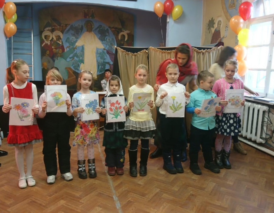 После трапезы воспитанники воскресной школы поздравили всех присутствующих с “Днем Матери”, показали мини-концерт: рассказали стихотворения, спели частушки, разыграли мини-сценки.