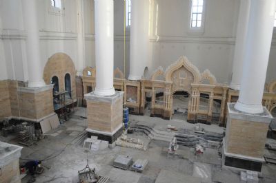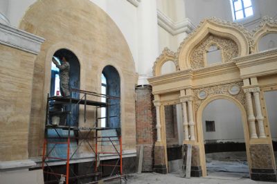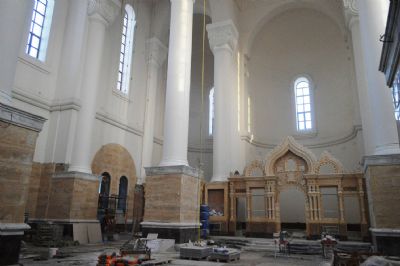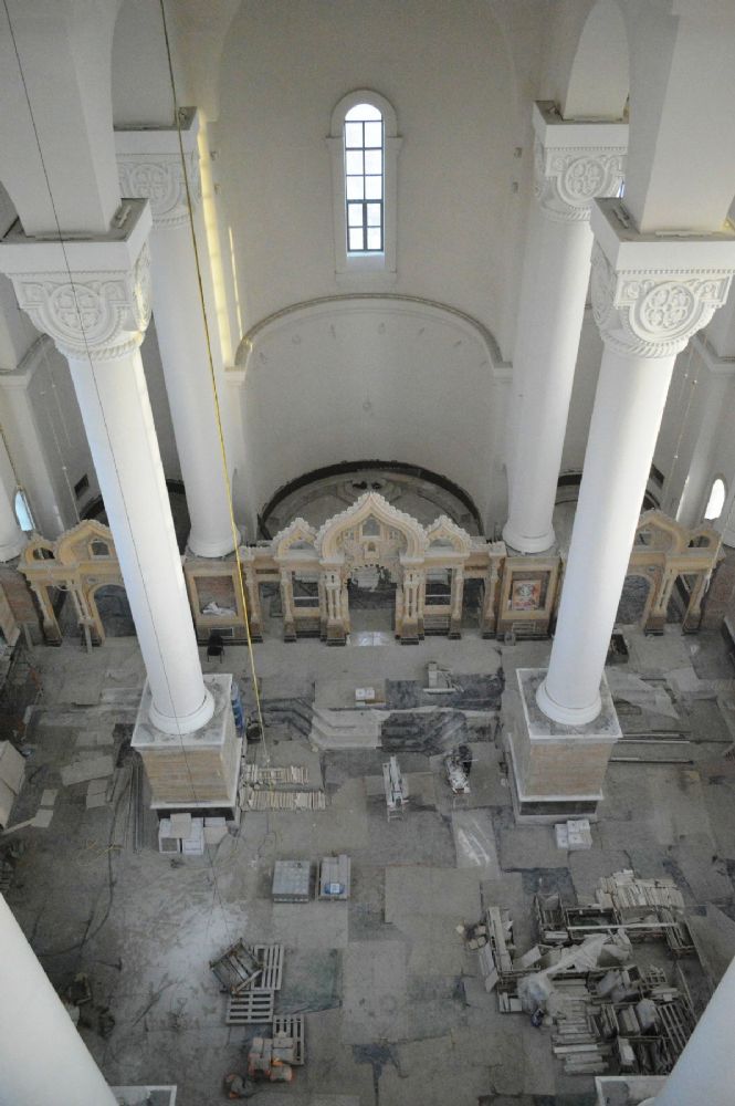 В настоящий момент также производится отделочные работы в помещениях для певчих, тамбурах, ведущих на колокольни, и в помещениях стилобатной части собора. Монтируются ограждения лестниц из стилобата в храм, осуществляются подготовительные работы для установки ограждений лестниц, ведущих на отметку +22.