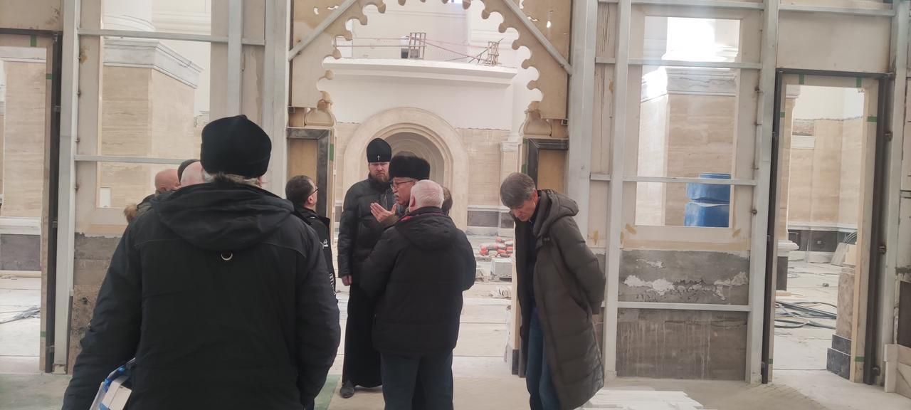 Владивосток. 18 января 2023 года митрополит Владивостокский и Приморский Владимир возглавил очередное рабочее совещание на строительной площадке Спасо-Преображенского кафедрального собора.