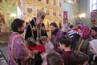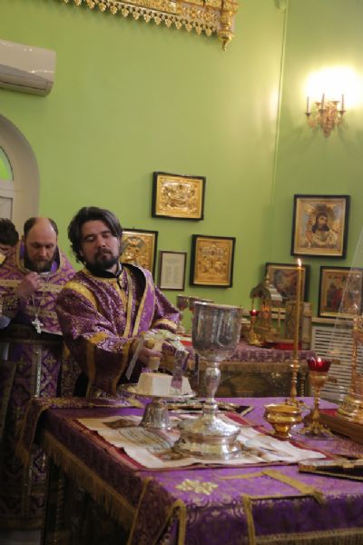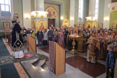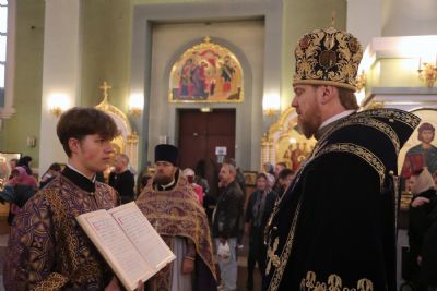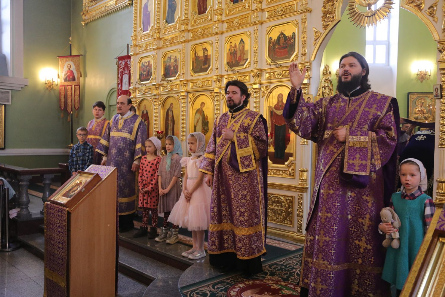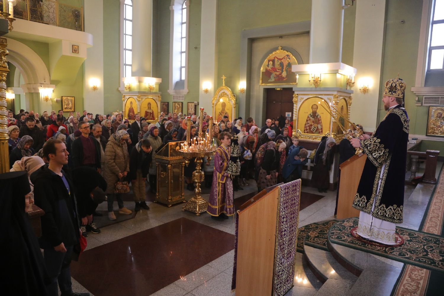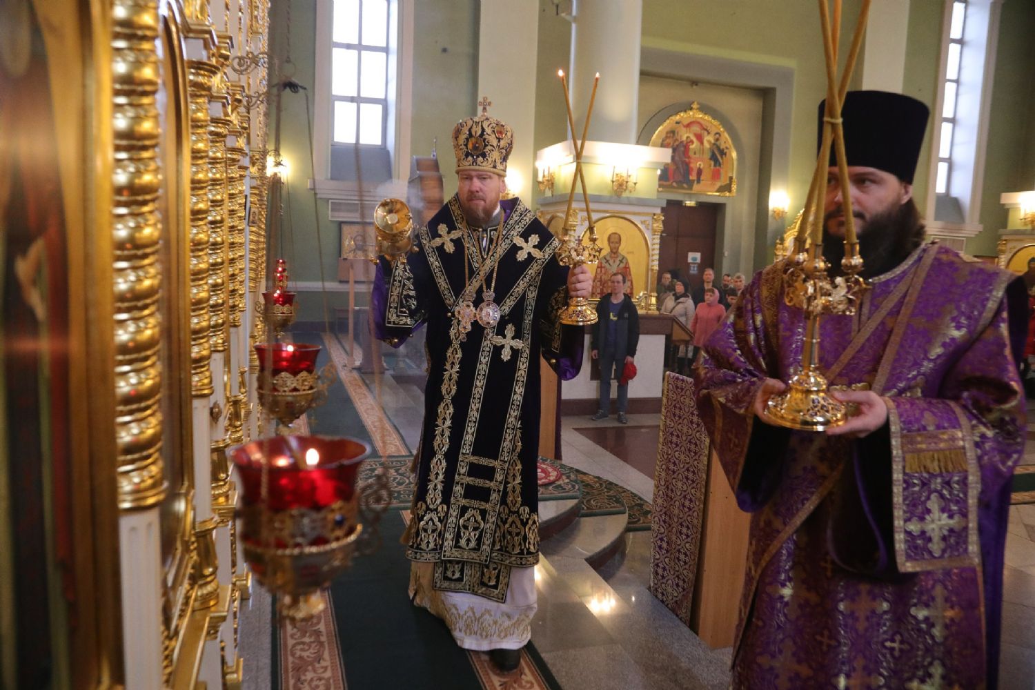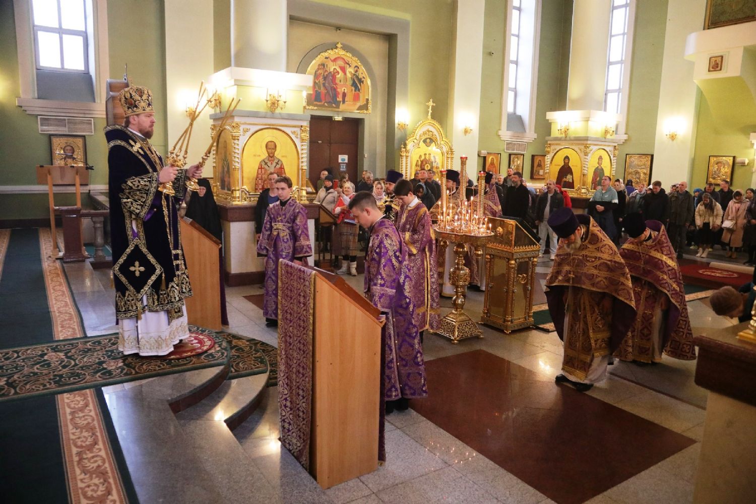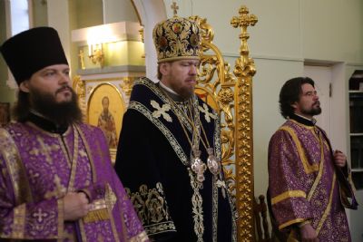 Его Высокопреосвященству сослужили: ключарь Покровского собора иерей Владимир Плотников, протоиерей Игорь Шевчук, иерей Максим Точуков, иерей Виктор Архипов.