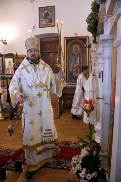 Его Высокопреосвященству сослужили: благочинный монастырей Владивостокской епархии, настоятель Свято-Серафимовского мужского монастыря игумен Климент (Кривоносов); протоиерей Вадим Маишев; заместитель благочинного I Владивостокского благочиния, ответственный за организацию архиерейских богослужений в храмах Владивостокской епархии протоиерей Димитрий Федорин; иеромонах Иннокентий (Корчага).
