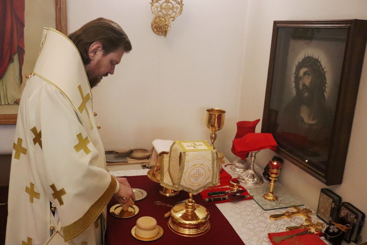 На сугубой ектение глава Приморской митрополии вознес молитву ко Господу о завершении строительства Спасо-Преображенского кафедрального собора г. Владивостока и молитву во время распространения вредоносного поветрия чтомую, также были вознесены молитвенные прошения в связи с угрозой распространения коронавирусной инфекции.
