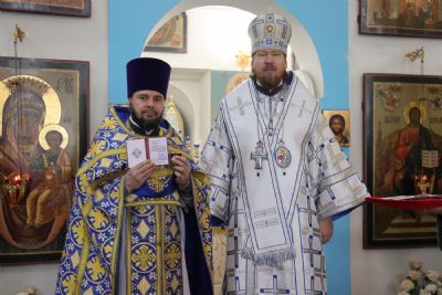 В завершение богослужения иерей Димитрий Винокуров от имени клира и прихожан поблагодарил владыку за совместную молитву и преподнес ему букет цветов.