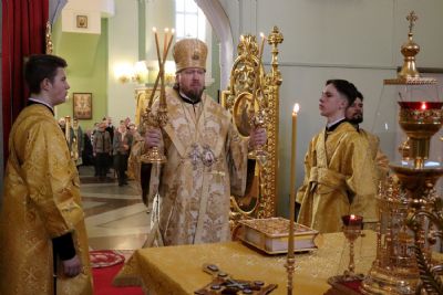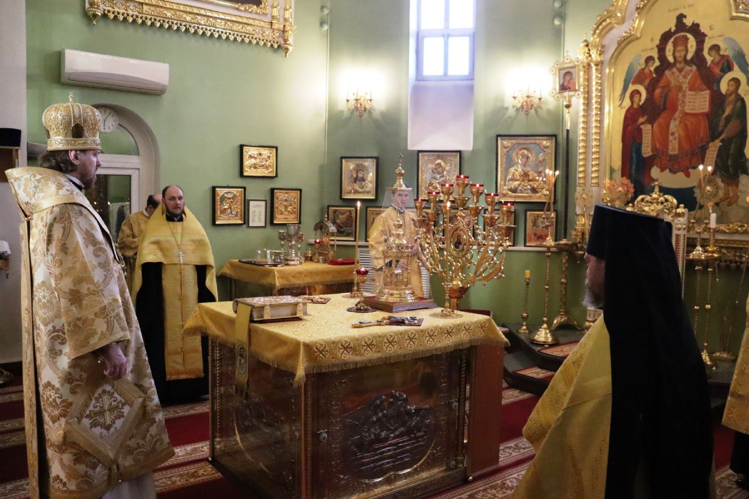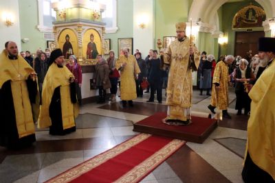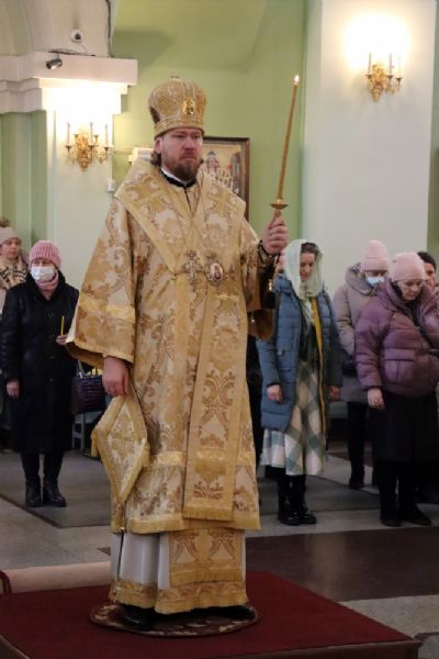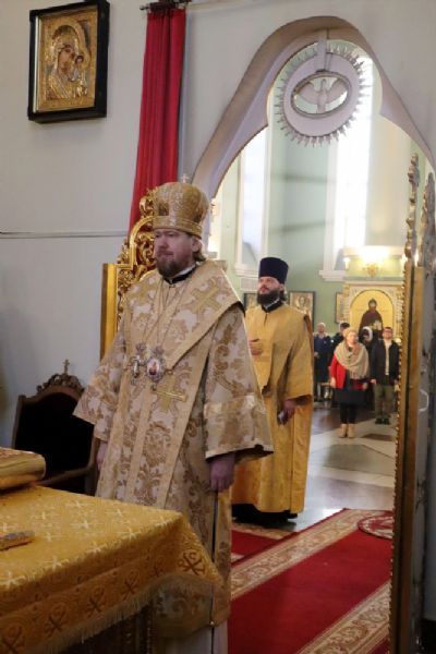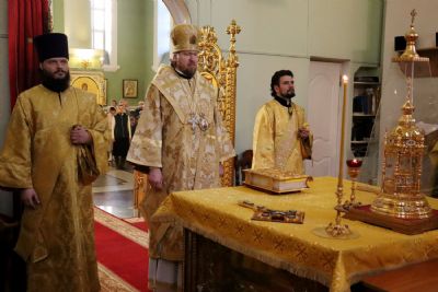 Его Высокопреосвященству сослужили: игумен Антоний (Каменчук), протоиерей Игорь Шевчук, иерей Дионисий Ищенко.