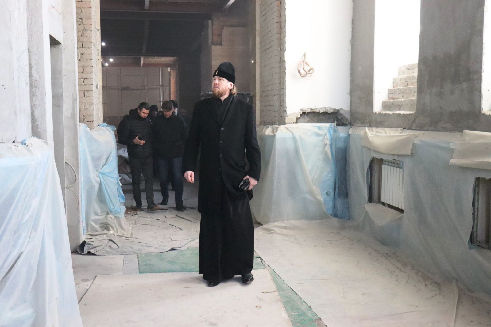 После совещания митрополит Владимир в сопровождении руководителей подрядных организаций осмотрел строительную площадку.
