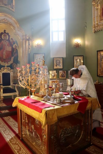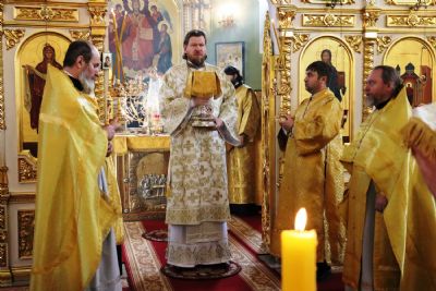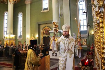 Его Высокопреосвященству сослужили: игумен Антоний (Каменчук), протоиерей Игорь Шевчук, иерей Максим Точуков, иерей Дионисий Ищенко.
