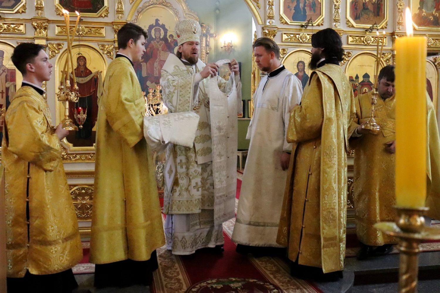 За богослужением митрополит Владимир совершил пресвитерскую хиротонию клирика собора диакона Михаила Тутаева.