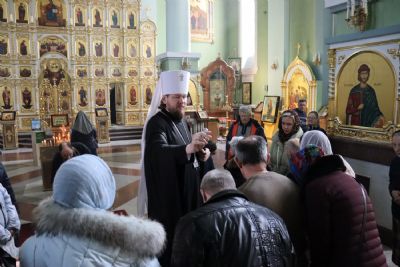 По окончании богослужения митрополит Владимир поблагодарил верующих за молитвы и преподал архипастырское благословение.