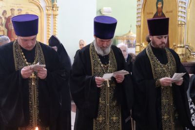 За богослужением также молились: ключарь собора иерей Владимир Плотников, игумен Антоний (Каменчук), протоиерей Игорь Шевчук, иерей Максим Точуков, иерей Олег Селезнёв, иерей Иоанн Караман, иерей Дионисий Ищенко, иерей Михаил Тутаев.