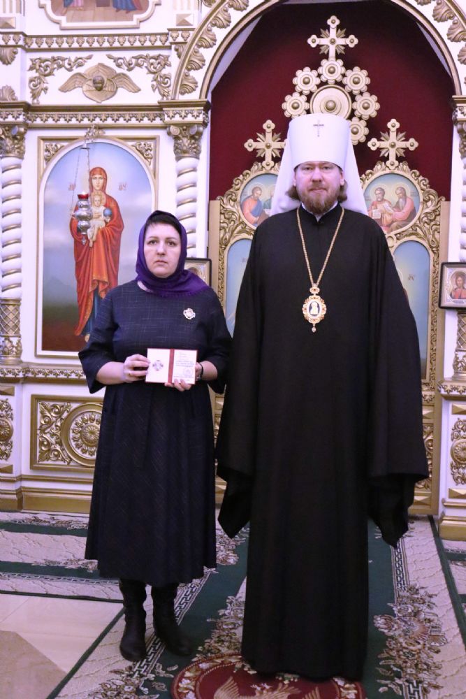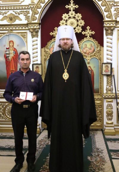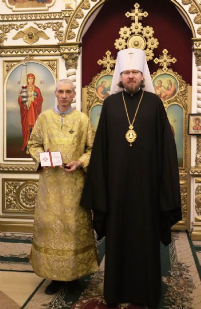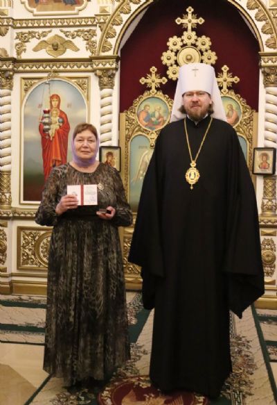 Затем состоялось награждение тружеников и благотворителей храма. Владыка Владимир вручил юбилейные памятные знаки «10 лет Приморской митрополии Русской Православной Церкви» Д. Н. Горбунову, А. Н. Прилипчану, Е. В. Бабиной, Е. С. Николаенко, М. К. Василец, И. С. Гуторовой, В. А. Кобчик, В. К. Никитиной.