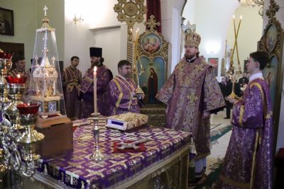 В завершение богослужения настоятель храма протоиерей Андрей Машанов от имени духовенства и прихожан поблагодарил владыку Владимира за архипастырский визит и преподнес букет цветов.