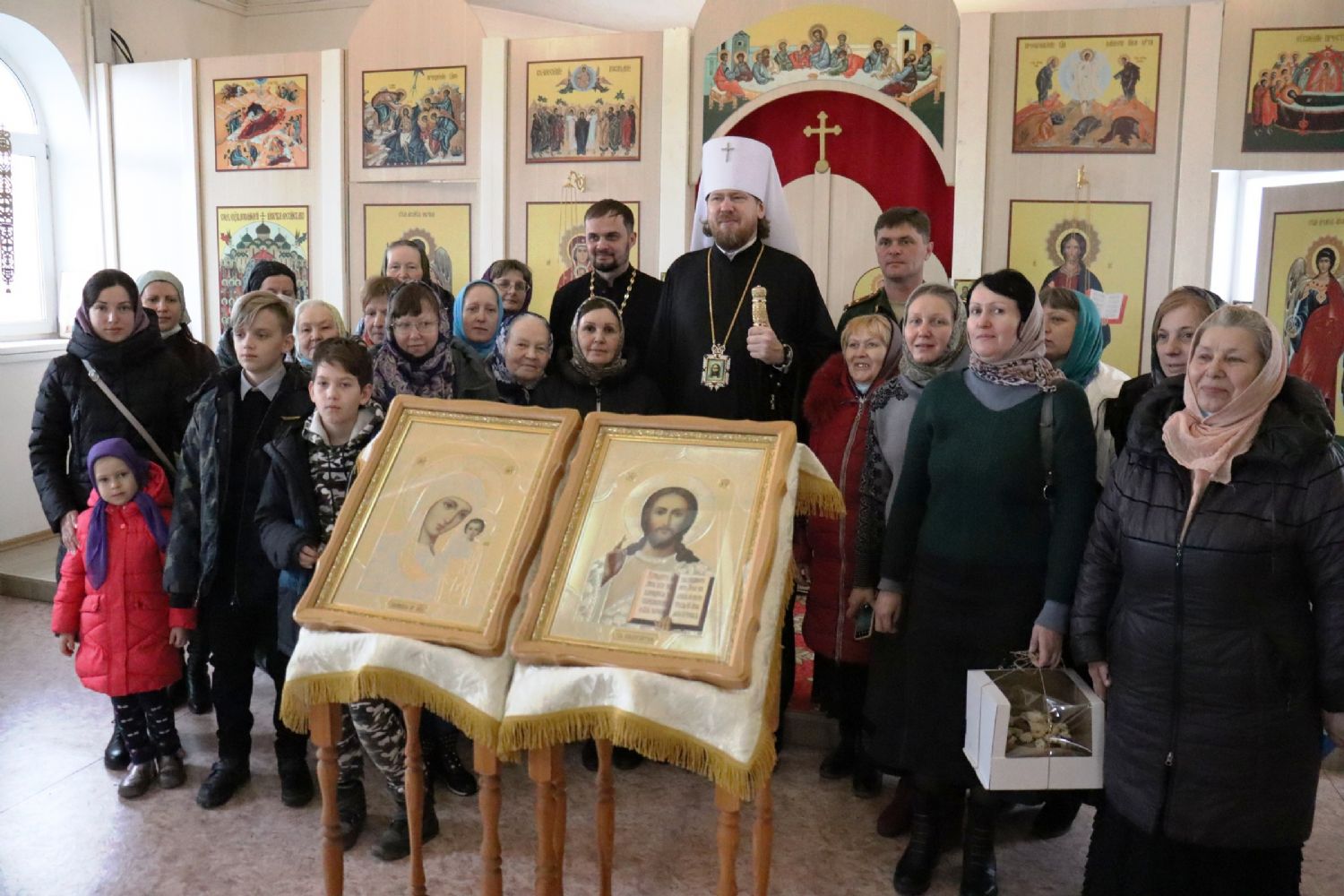 Настоятель храма иерей Сергий Качев от имени духовенства и прихожан поблагодарил владыку Владимира за архипастырский визит и преподнес ему букет цветов.